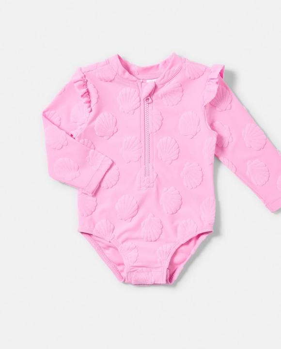 Dress up your bub for the pool or beach with our range of fun baby swimwear, boardshorts, rashies and baby sun hats. Our cute prints, frilly details and swim accessories will ensure your little one is looking their best. All at our famously low prices.