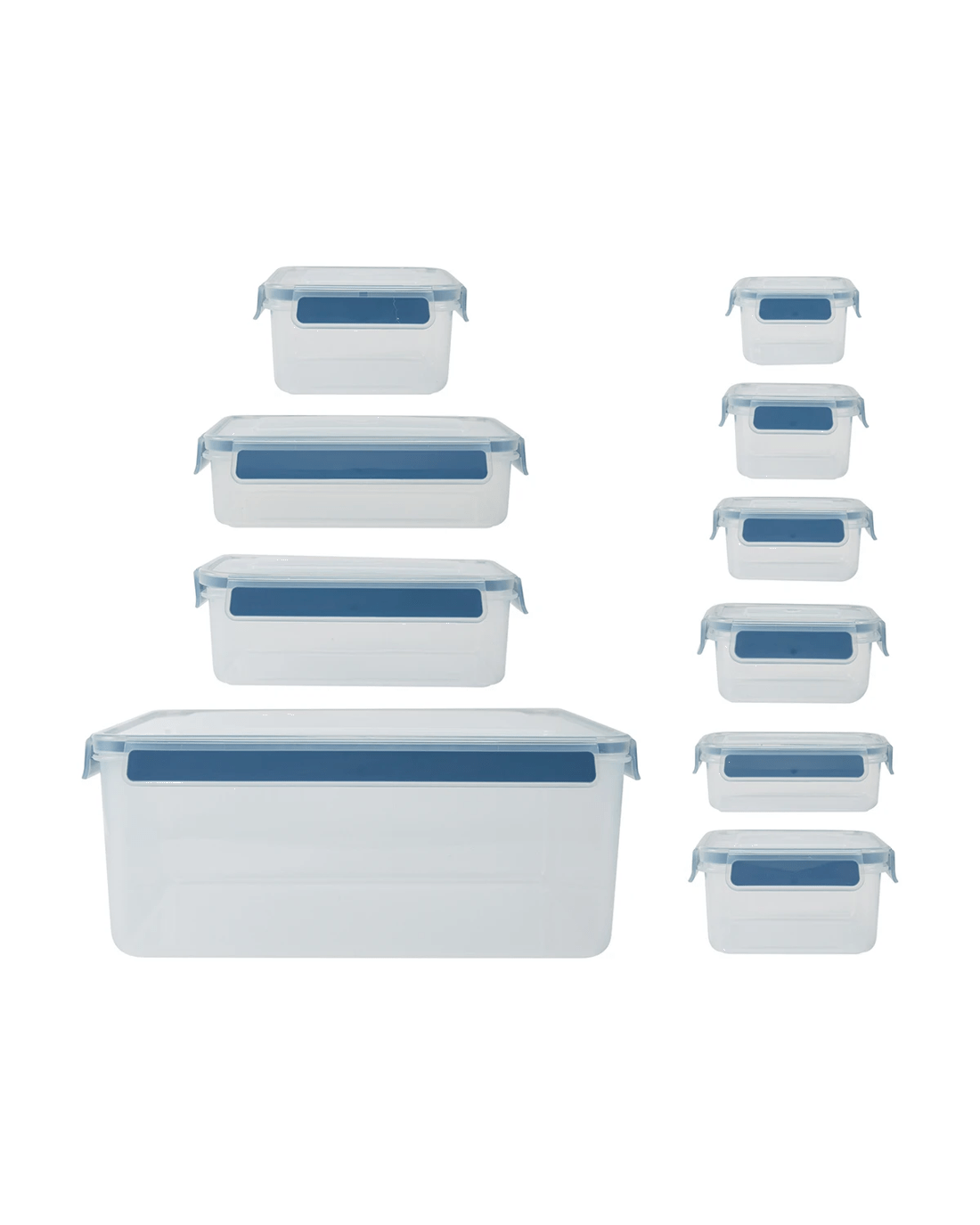 Set of Ten Containers: This convenient set includes ten rectangular containers, making it easy to store a range of ingredients, snacks, or leftovers.