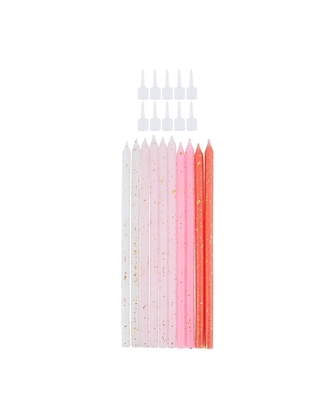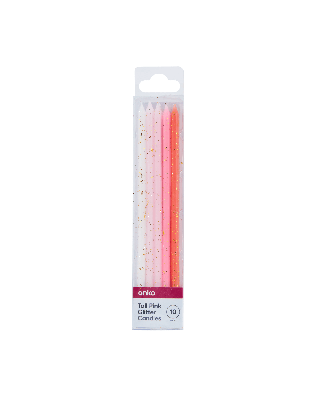 Make every celebration sparkle with these 10 Pack Tall Pink Glitter Candles. Their shimmering finish adds a touch of glamour to cakes and party tables alike. Perfect for birthdays, special occasions or just a bit of extra shine.