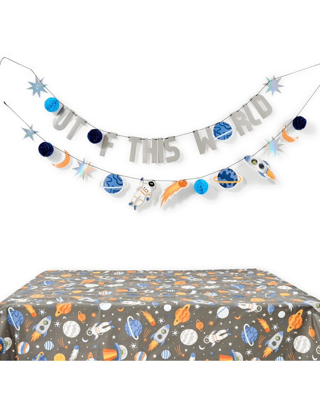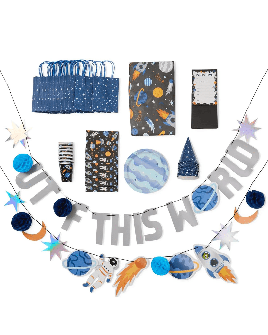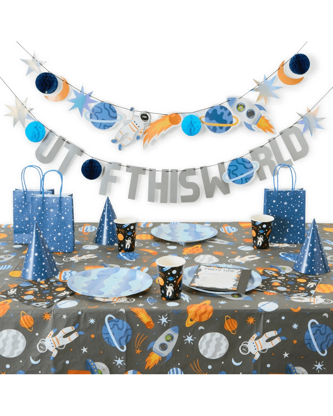 This 100 Piece Space Party Box is packed with colourful decorations, tableware and extras to make your kid's celebration out of this world. Perfect for birthdays, family gatherings or themed parties, it brings a playful cosmic touch to every event.