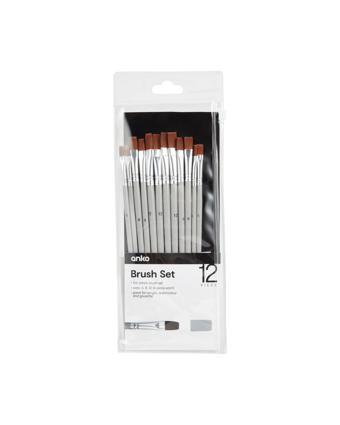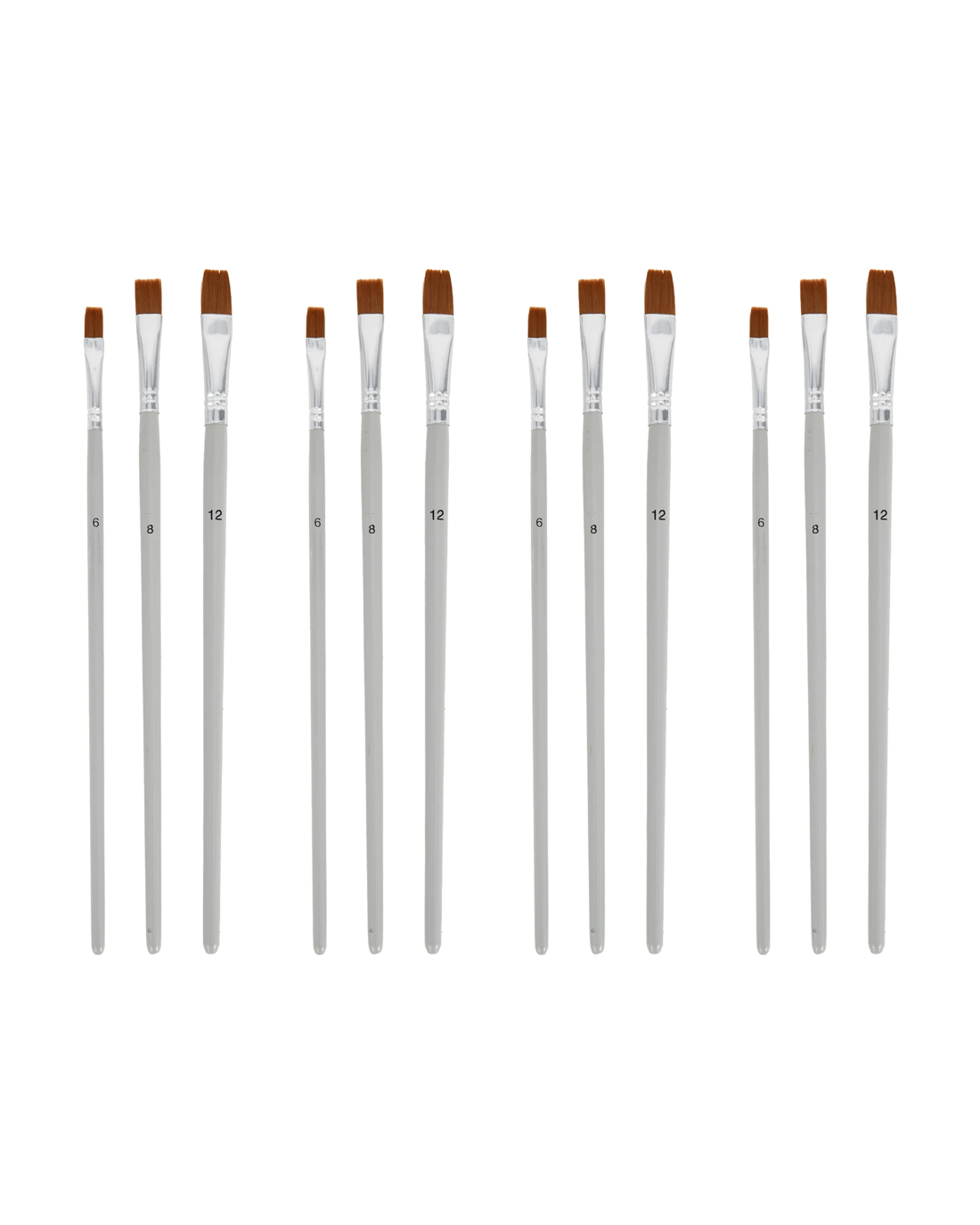• Includes 4 x flat brushes (size 6), 4 x flat brushes (size 8) and 4 x flat brushes (size 12)
