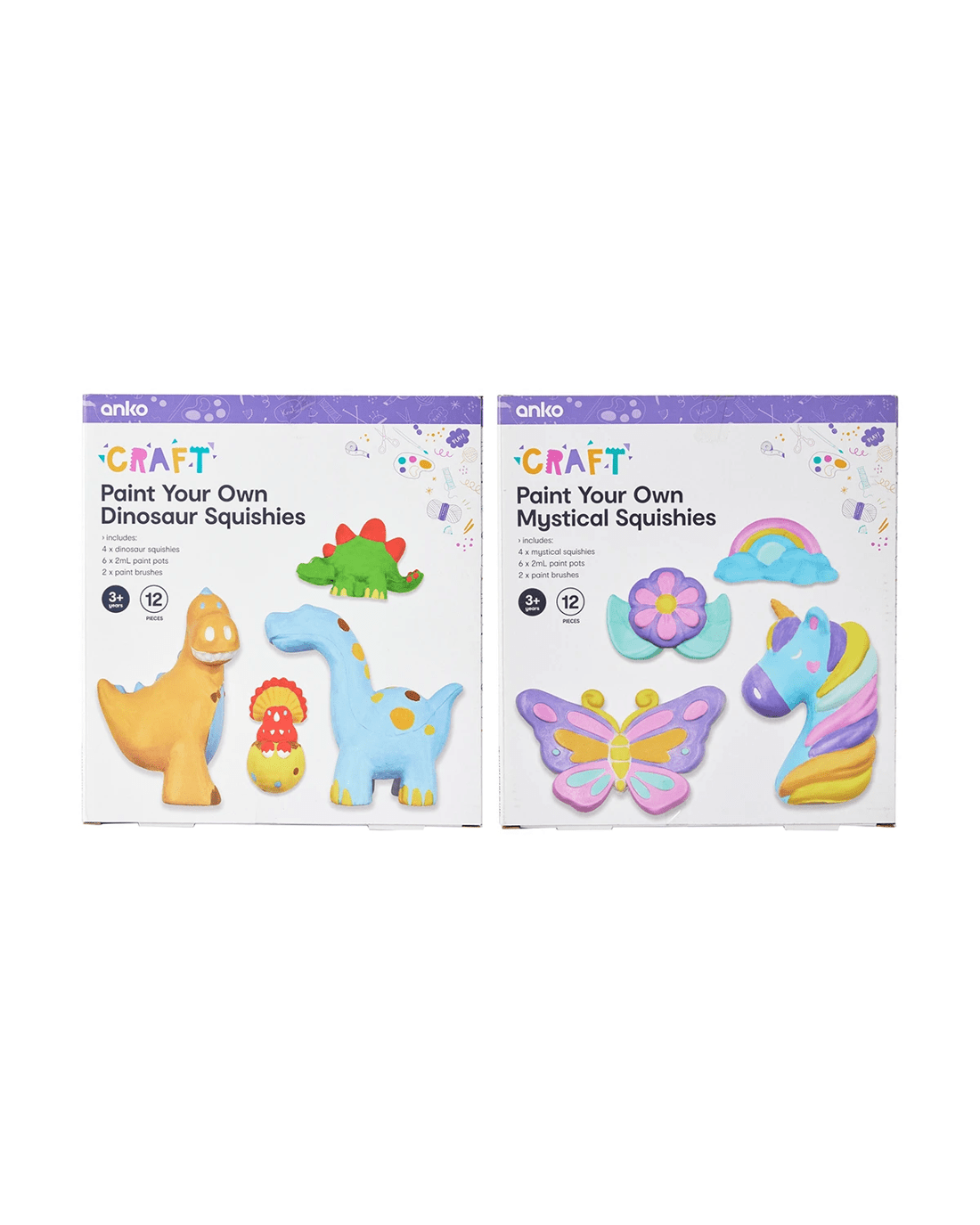 - Includes 4 x squishies, 6 x 2ml paint pots and 2 x paint brushes