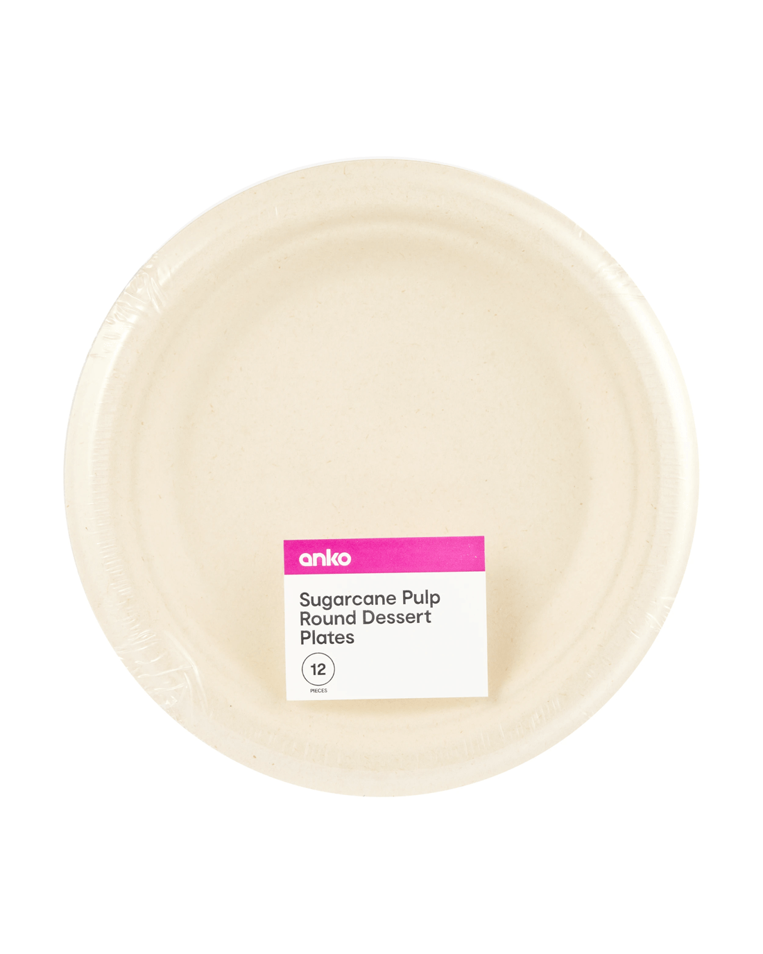 12 Piece Sugarcane Pulp Round Dessert Plates