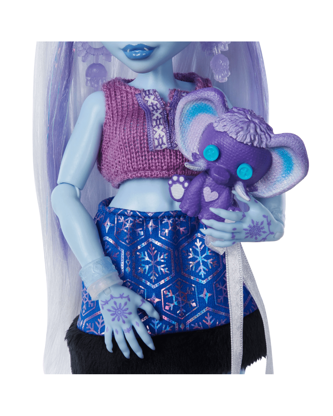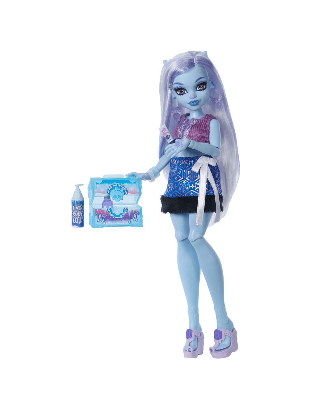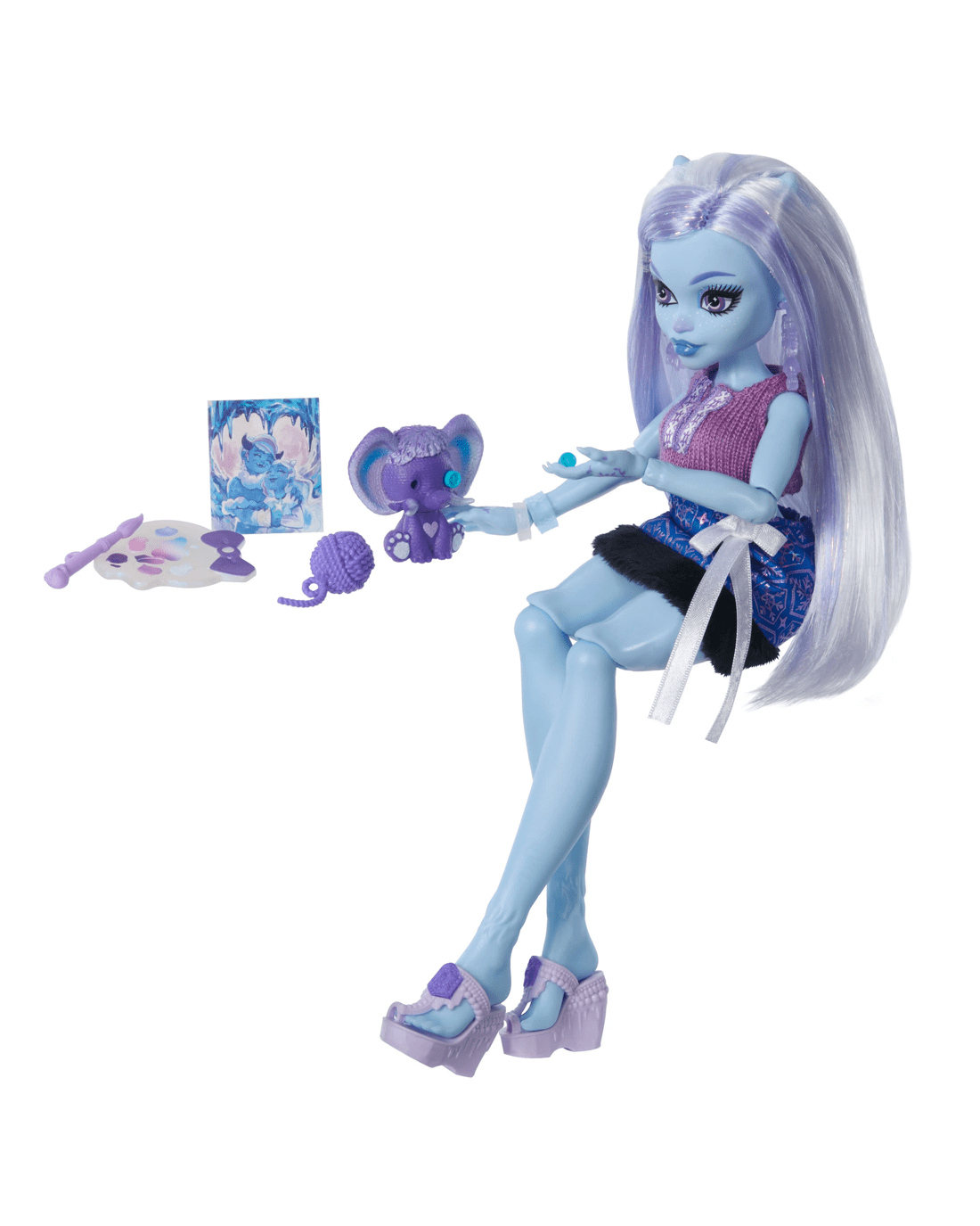 - Abbey Bominable doll is ready for some self-scare time in her comfy knit top and furry skirt! Open mystery bags packed with spooktacular surprises to discover how this yeti likes to unwind