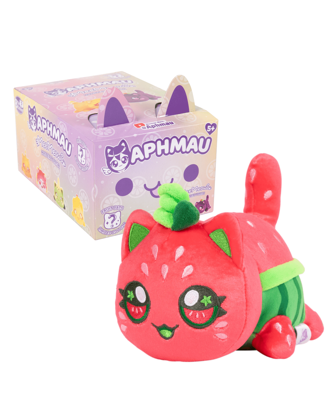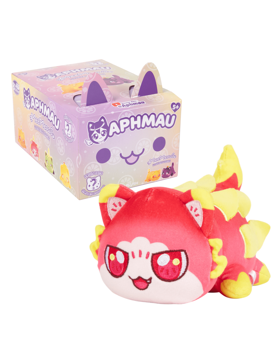 *Each sold separatelyAre you ready for the most delicious MeeMeows yet? Mega Minecraft YouTuber and female gamer Aphmau has a new fruit collection ripe for picking! Bring home Cherry Cat, Kiwi Cat, Banana Cat, Dragon Fruit Cat, Watermelon Cat, Grape Cat, Orange Cat and Pineapple Cat, all packed in fun blind boxes! These fresh and sweet plushies are super soft and purr-fect for cuddling. Collect all eight and check out Aphmau's meow-sterful Minecraft adventures on her official YouTube channel!