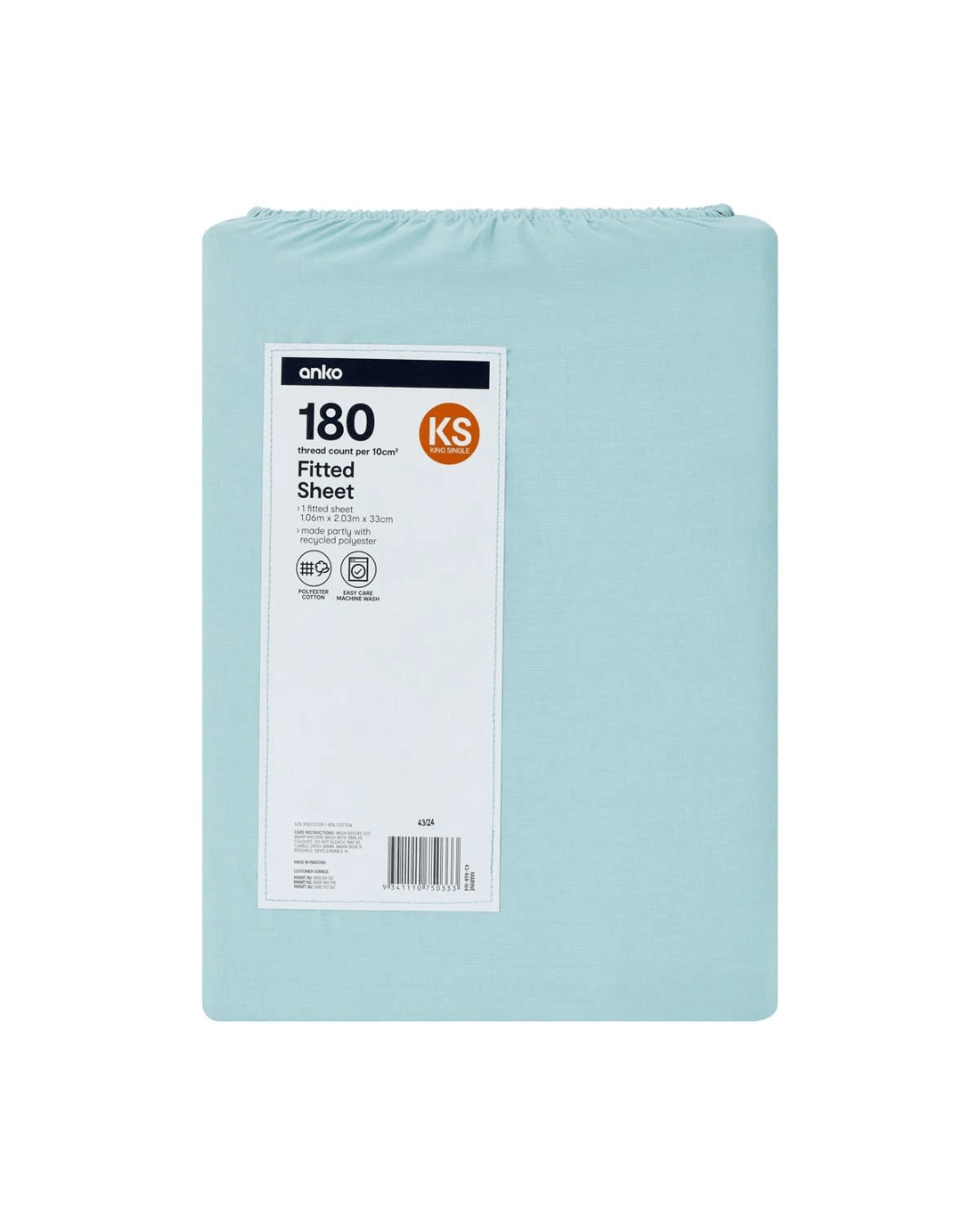 180 Thread Count Fitted Sheet - King Single Bed, Marine