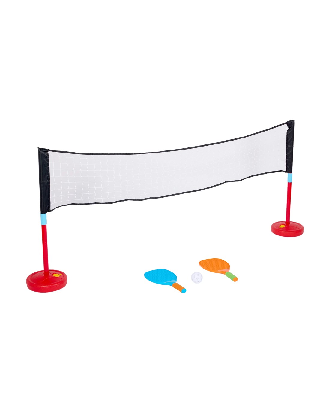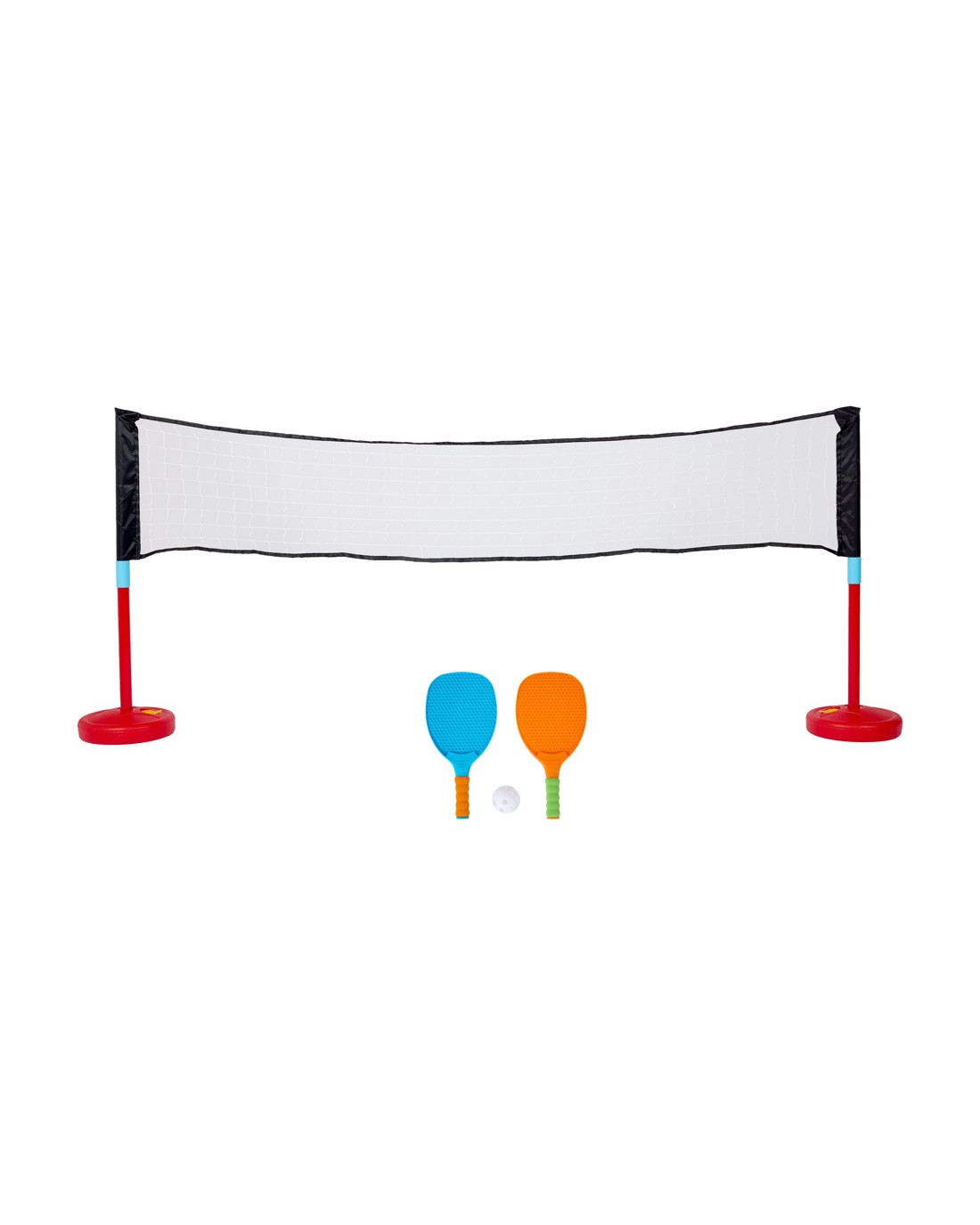 • Includes stand with net, tennis trainer base, two paddles, one pickleball and one ball with rope