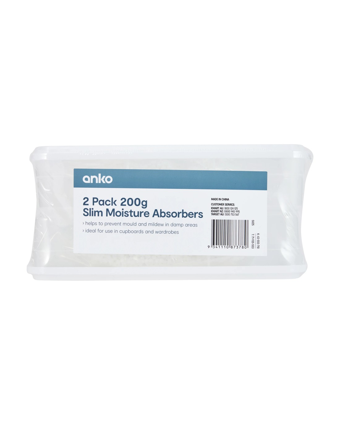 Protect your spaces from excess moisture with this 2 Pack 200g Slim Moisture Absorbers. Designed to fit in compact areas, they help reduce dampness, prevent musty odours and keep wardrobes, cupboards, or storage boxes fresh and dry.