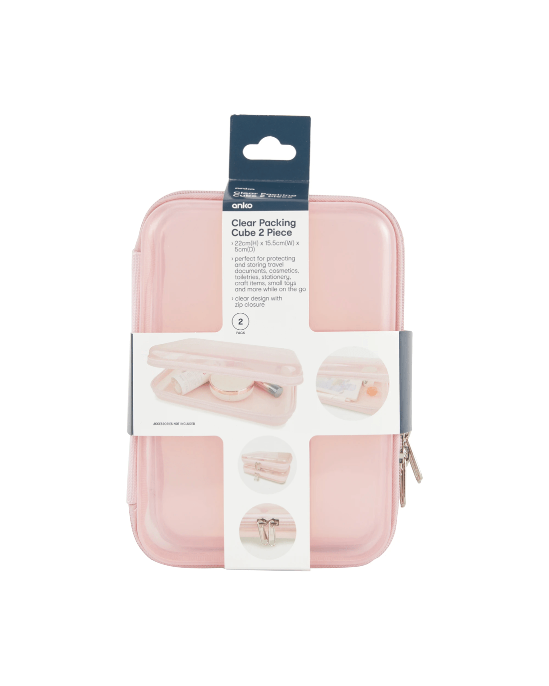 2 Pack Clear Packing Cubes - Pink