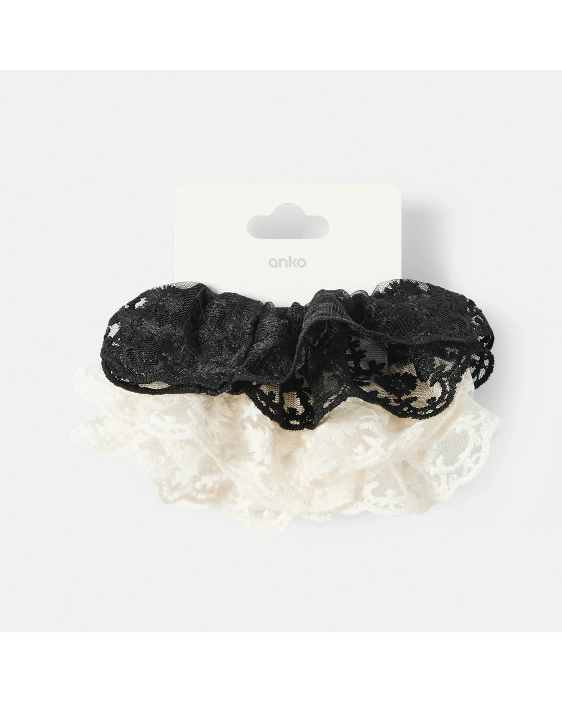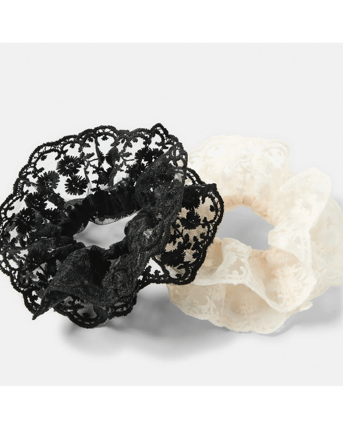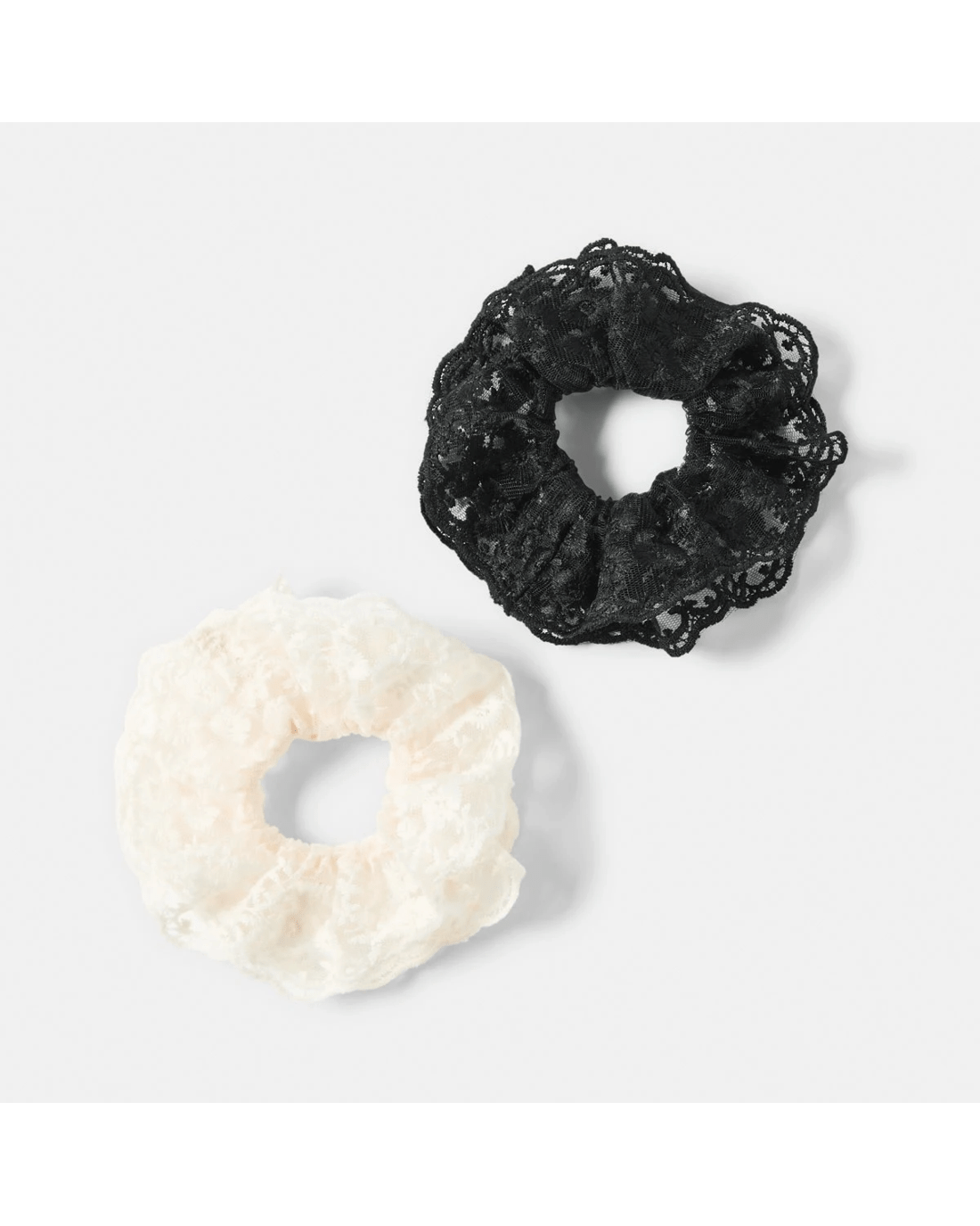 2 Pack Frill Lace Hair Scrunchies - White and Black