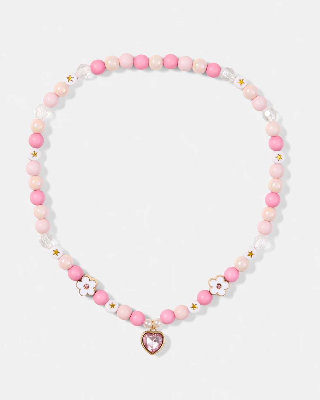 2 Pack Heart Necklace and Bracelet Set - White and Pink