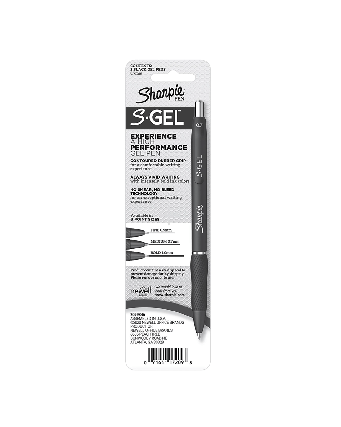 The power of Sharpie is now in a gel pen with the Sharpie S-Gel. With no smear, no bleed technology and bold, best-in-class ink, this Sharpie pen delivers always-vivid writing. It’s a high-performance gel pen with a sleek, professional look that makes it a writing instrument you won't want to loan out. And the contoured rubber grip makes for comfortable writing during any task. Available in multiple point sizes, barrel finishes and gel ink colours, Sharpie S-Gel offers a smooth writing experience perfect for homes, schools, or offices.