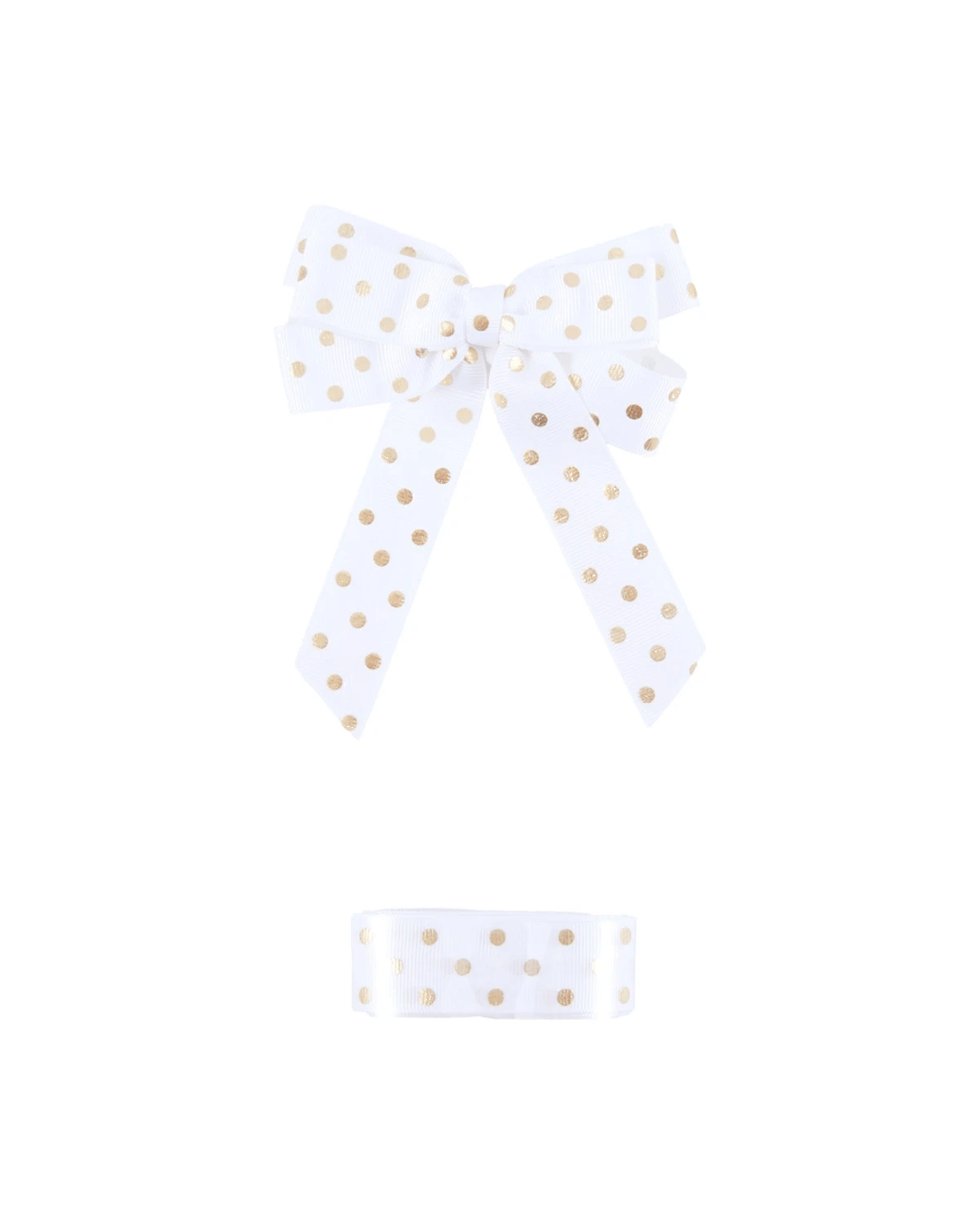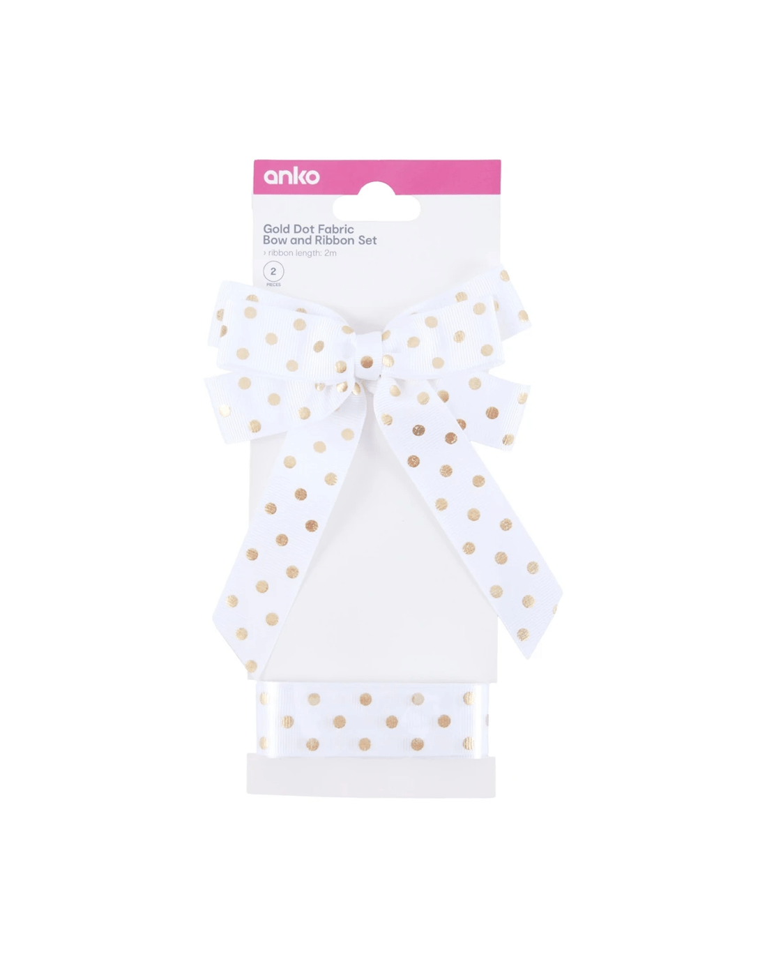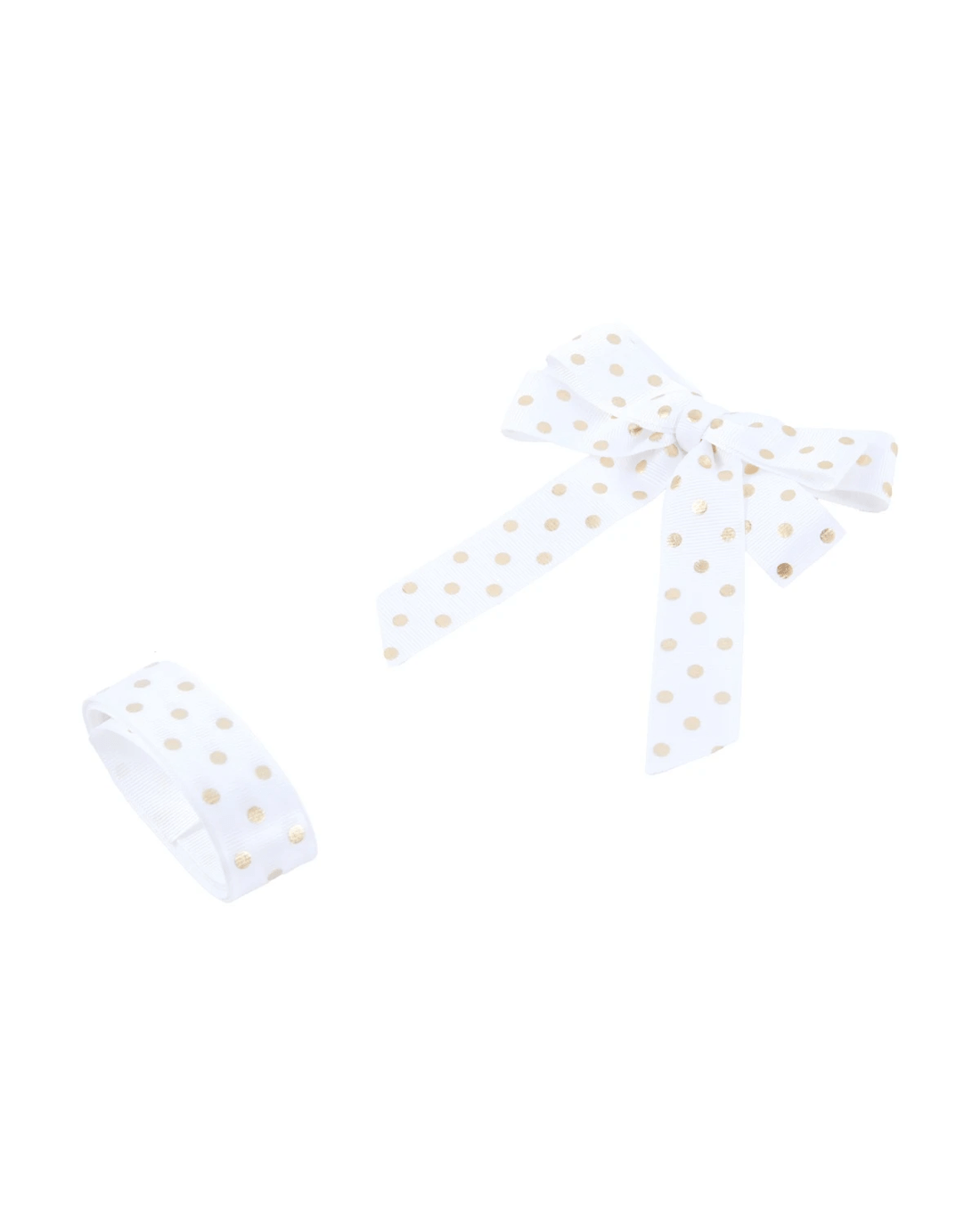 2 Piece Fabric Bow and Ribbon Set - Gold Dot