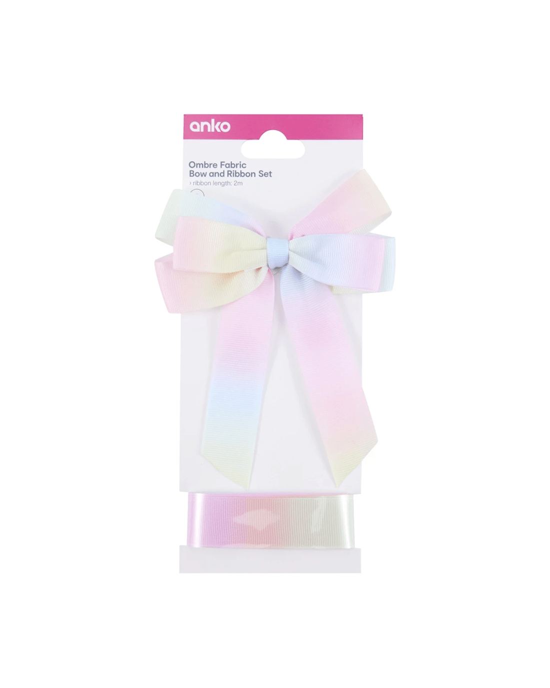 2 Piece Fabric Bow and Ribbon Set - Ombre