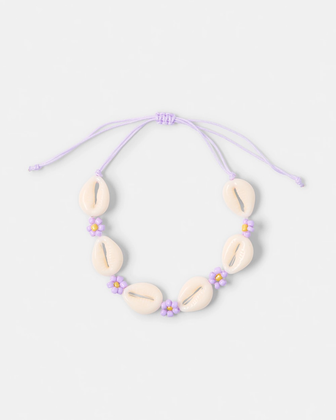 2 Piece Shell Necklace and Bracelet Set - Gold Tone, White and Purple
