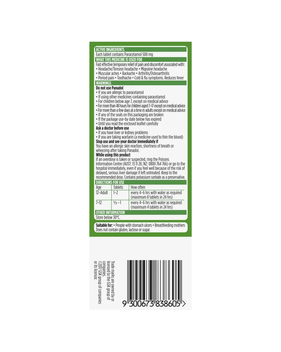 Panadol Tablets are effective for the relief of pain and are gentle on the stomach.