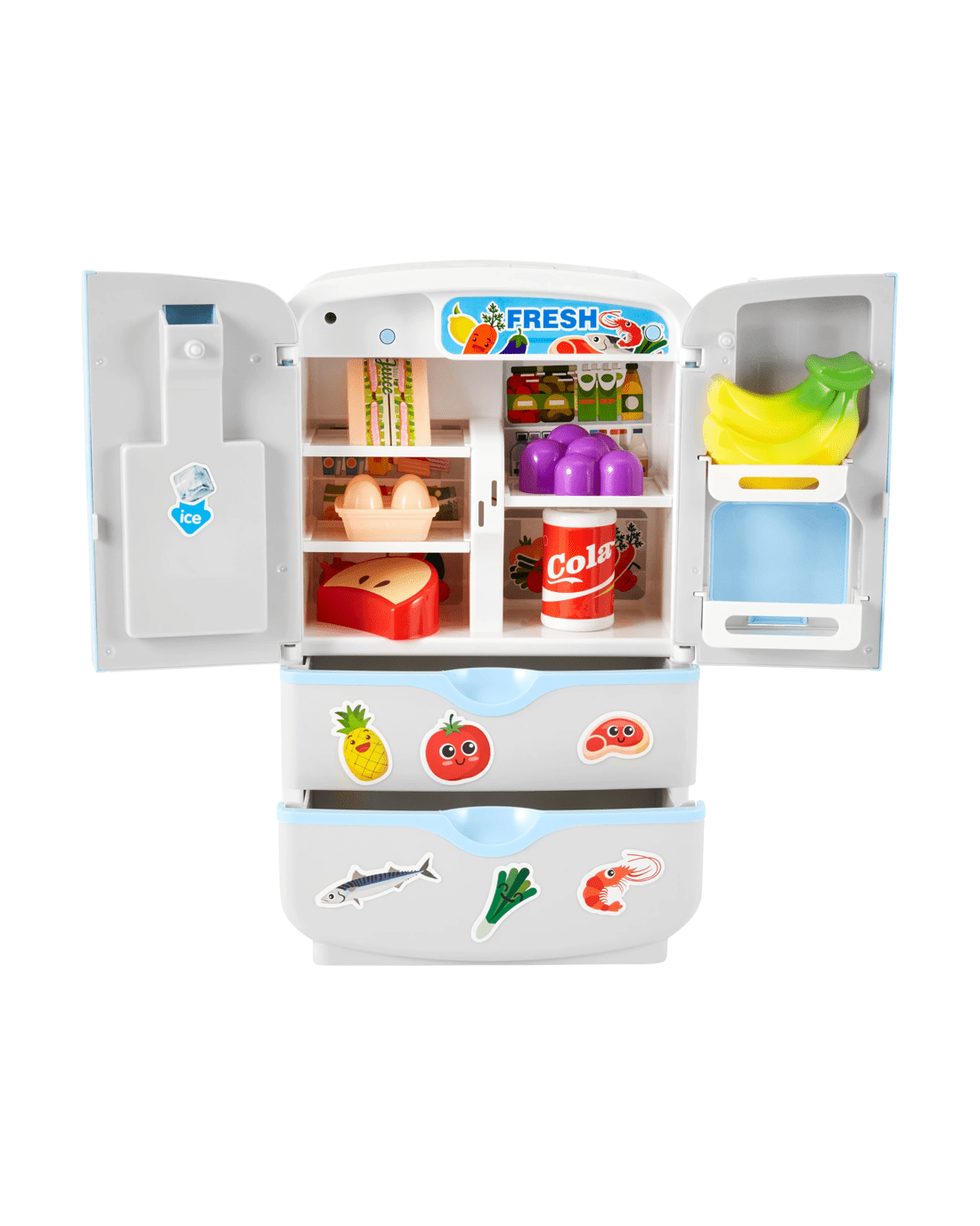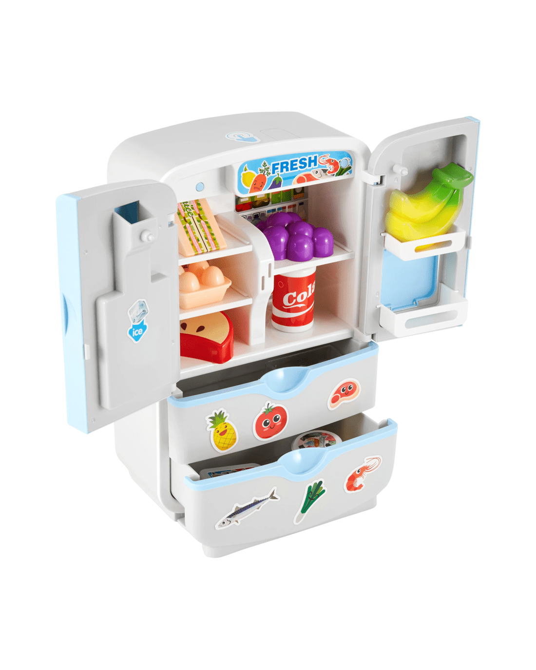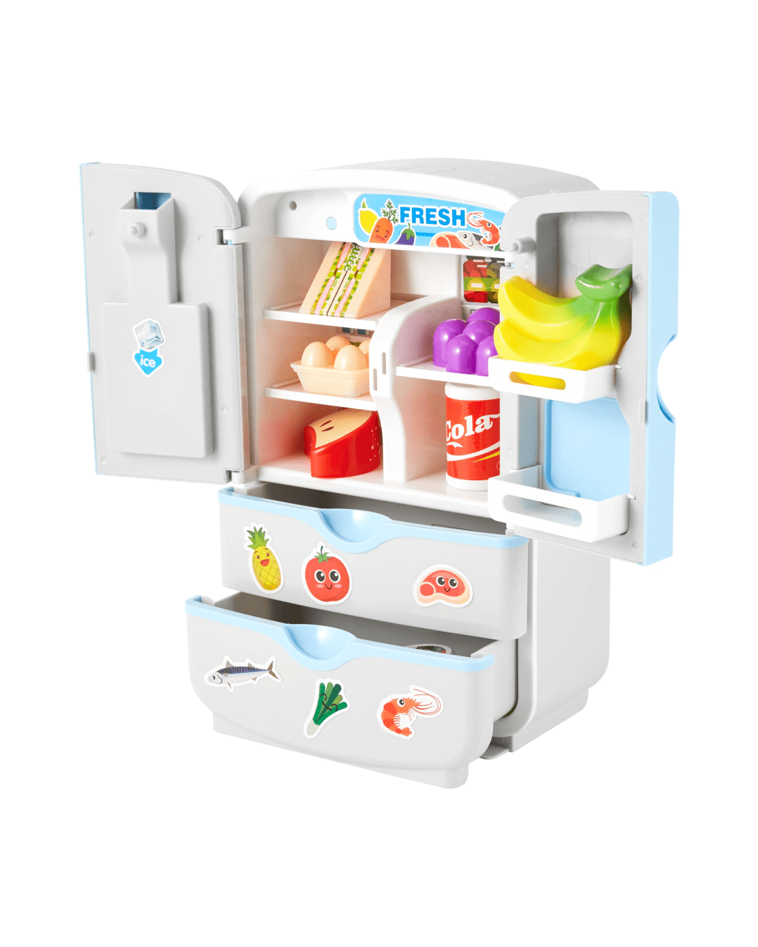 Enhance your child's imaginative play with this Fridge Playset! Complete with shelves, pretend food and realistic features, it’s perfect for hours of fun-filled kitchen role play.
