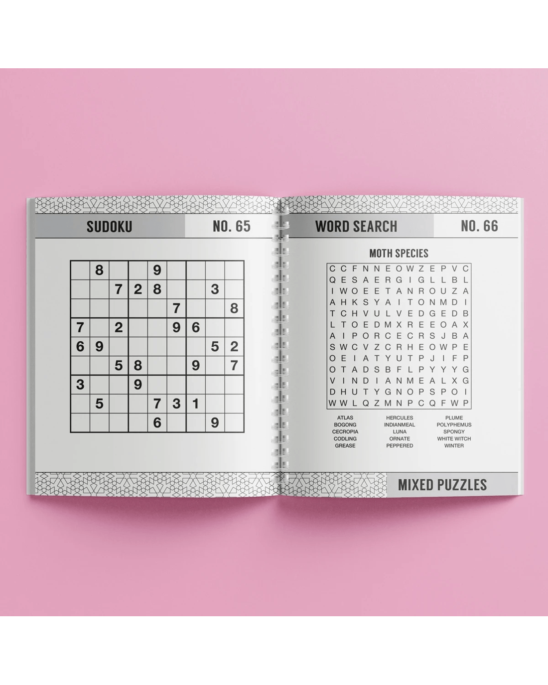 Embark on a journey of mental stimulation and fun with this Mixed Puzzles book! Featuring 250 challenging mixed puzzles, this book is designed to engage and entertain puzzle enthusiasts of all levels. The spiral binding ensures easy handling and comfortable use, allowing you to focus on solving without worrying about pages flipping or creasing. Whether you're a puzzle novice or a seasoned solver, each puzzle promises an exciting challenge that will keep your mind sharp and entertained for hours on end!