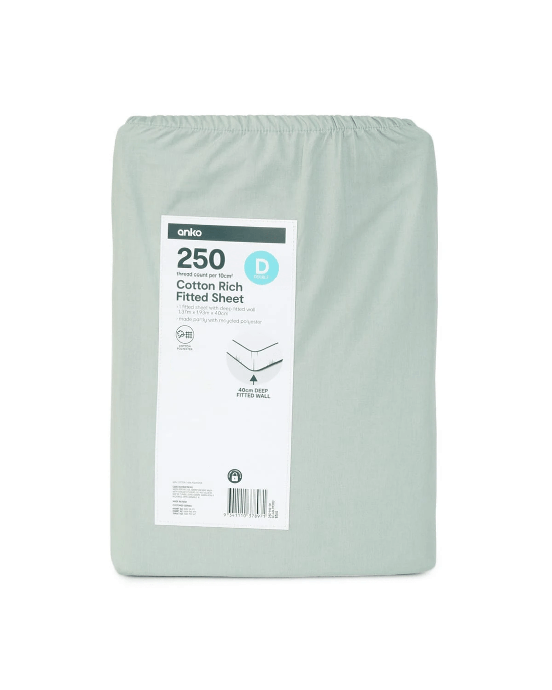 250 Thread Count Cotton Rich Fitted Sheet - Double Bed, Eucalyptus