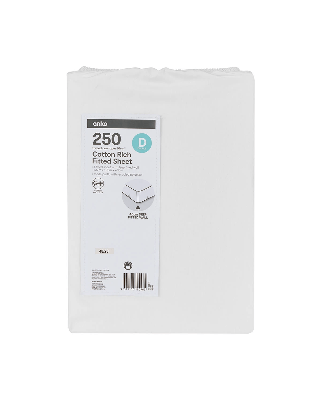 250 Thread Count Cotton Rich Fitted Sheet - Double Bed, White