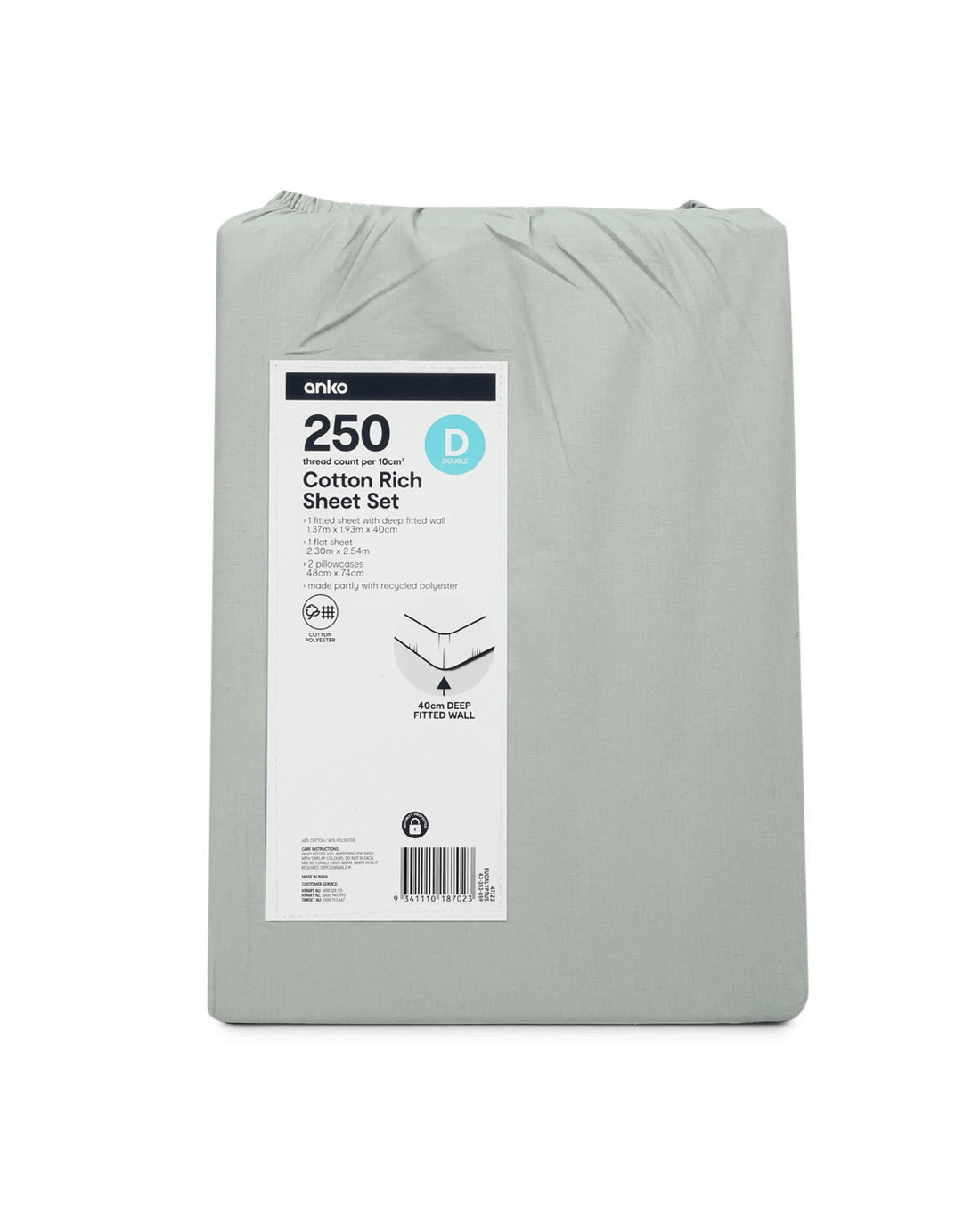 250 Thread Count Cotton Rich Sheet Set - Double Bed, Eucalyptus