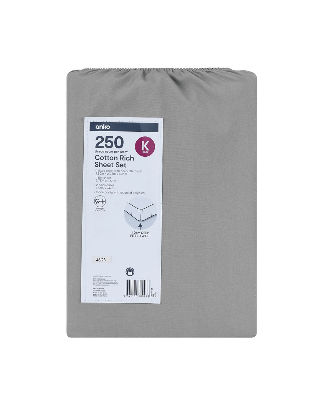 250 Thread Count Cotton Rich Sheet Set - King Bed, Grey