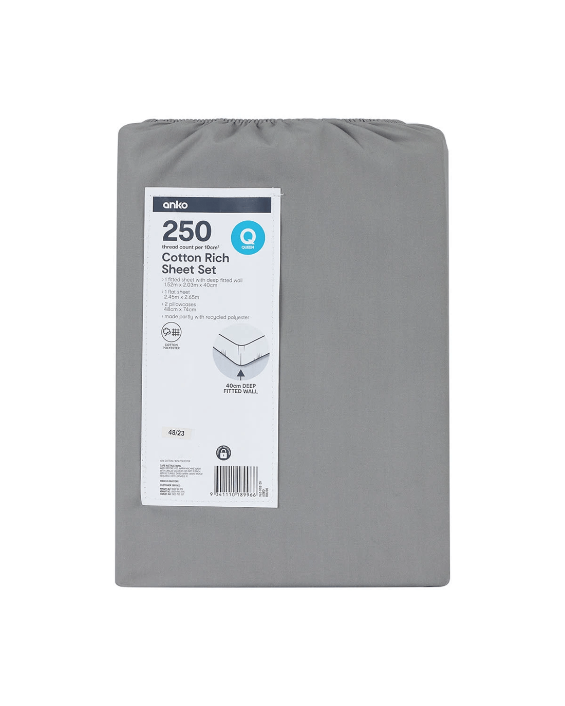 250 Thread Count Cotton Rich Sheet Set - Queen Bed, Grey