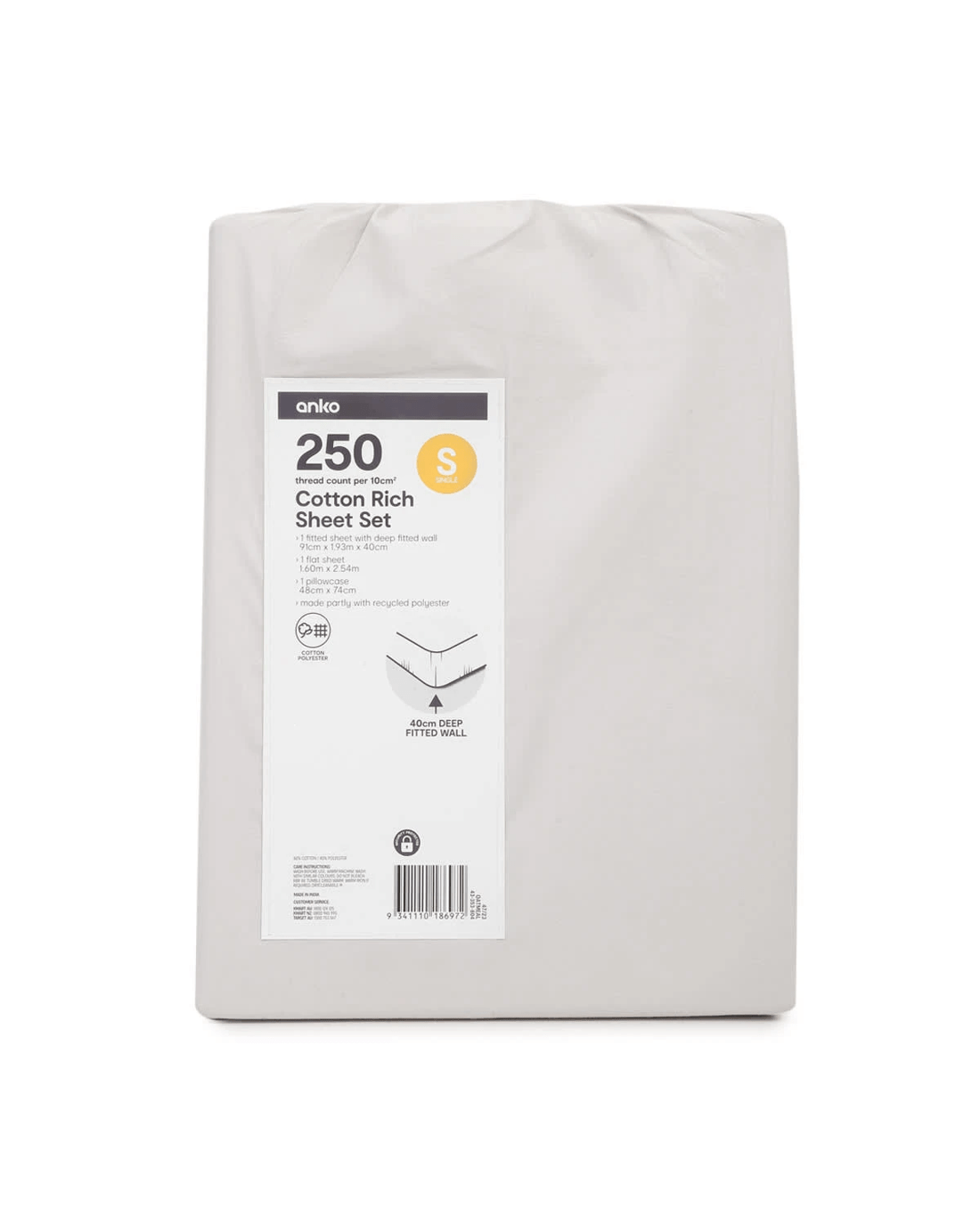 250 Thread Count Cotton Rich Sheet Set - Single Bed, Oatmeal