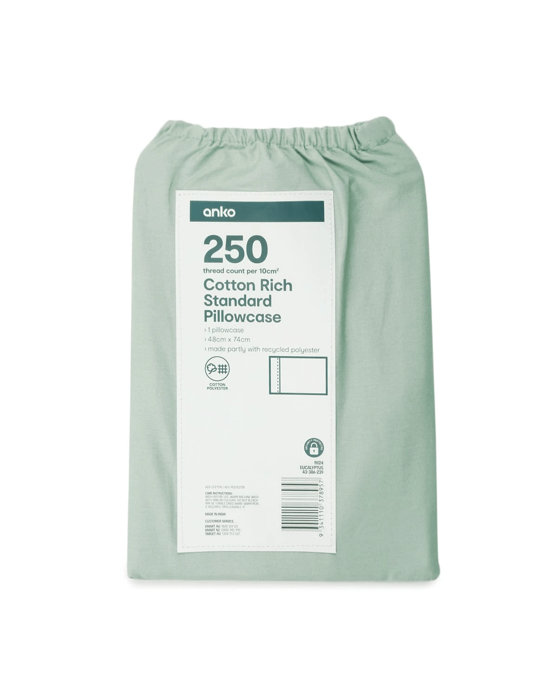 250 Thread Count Cotton Rich Standard Pillowcase - Eucalyptus