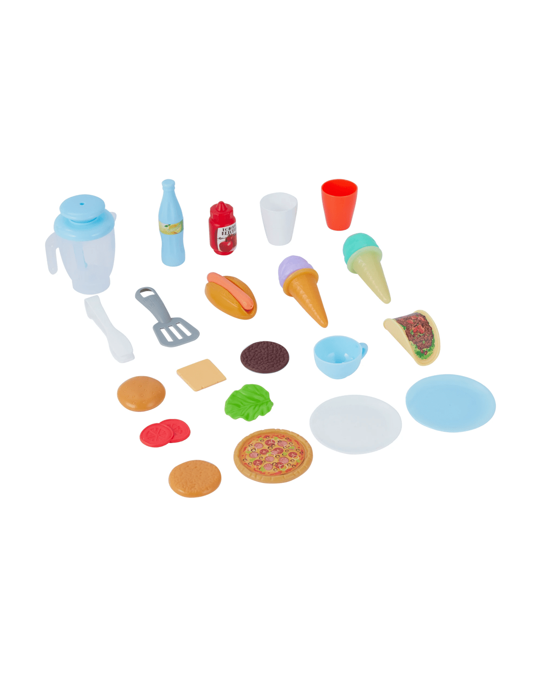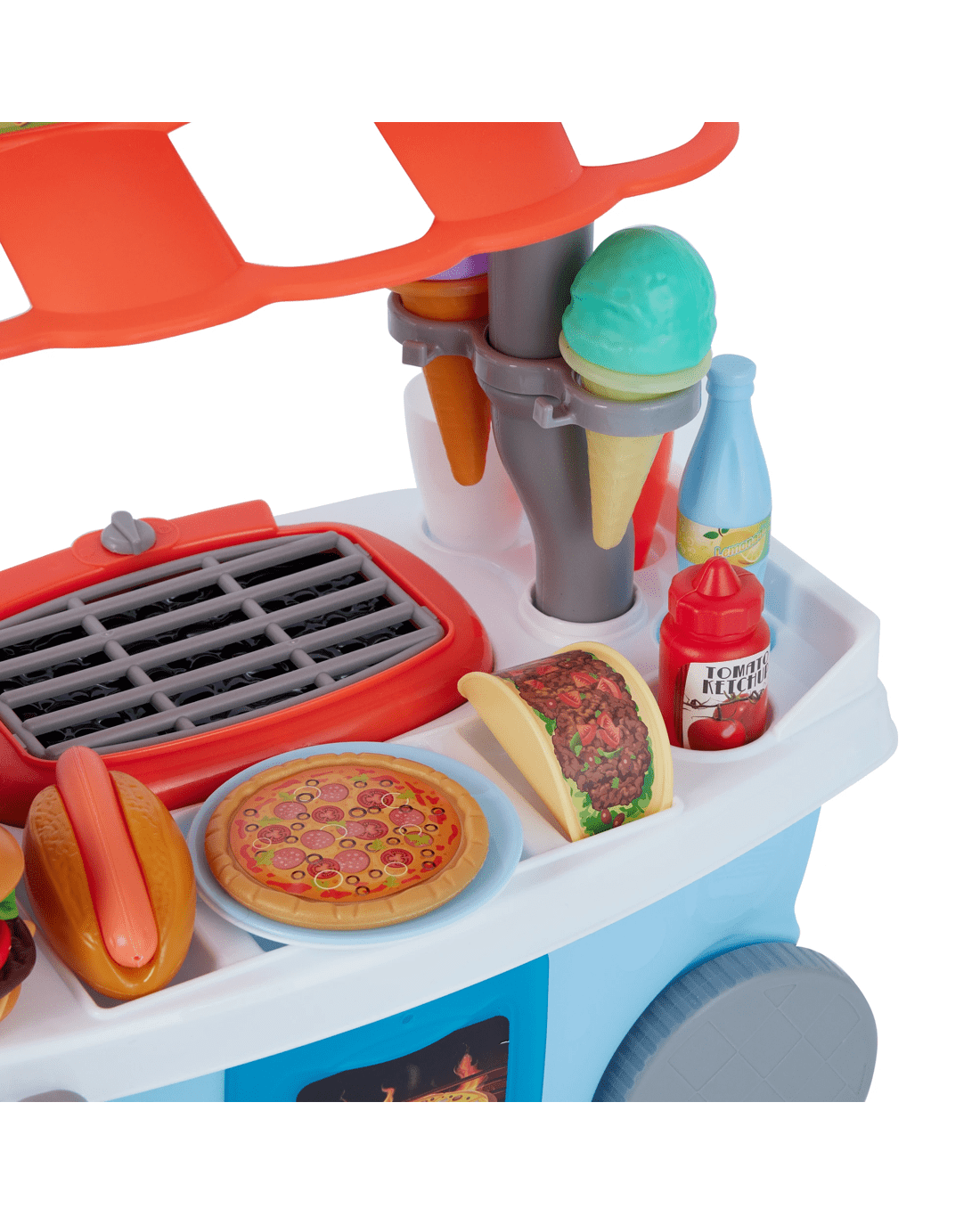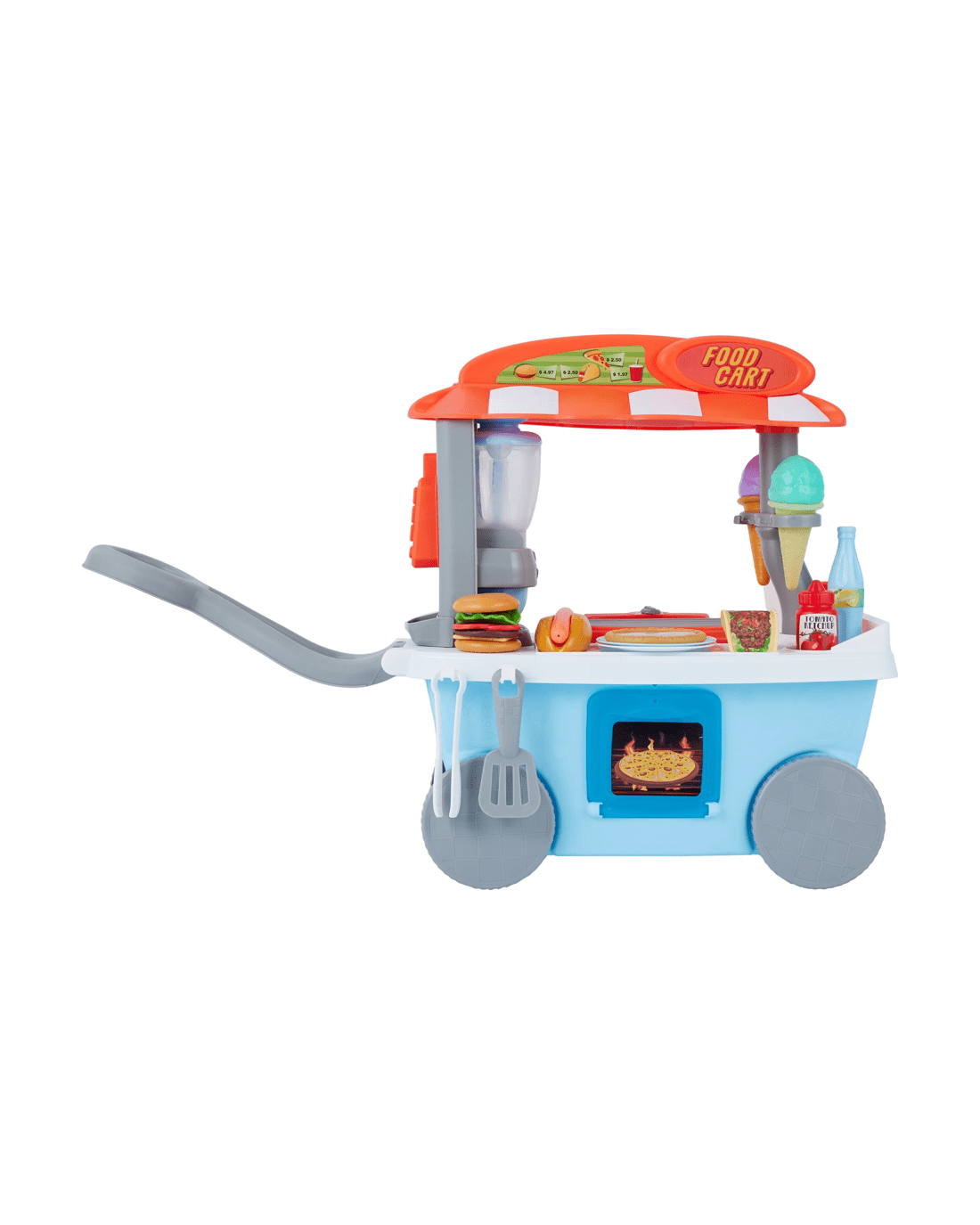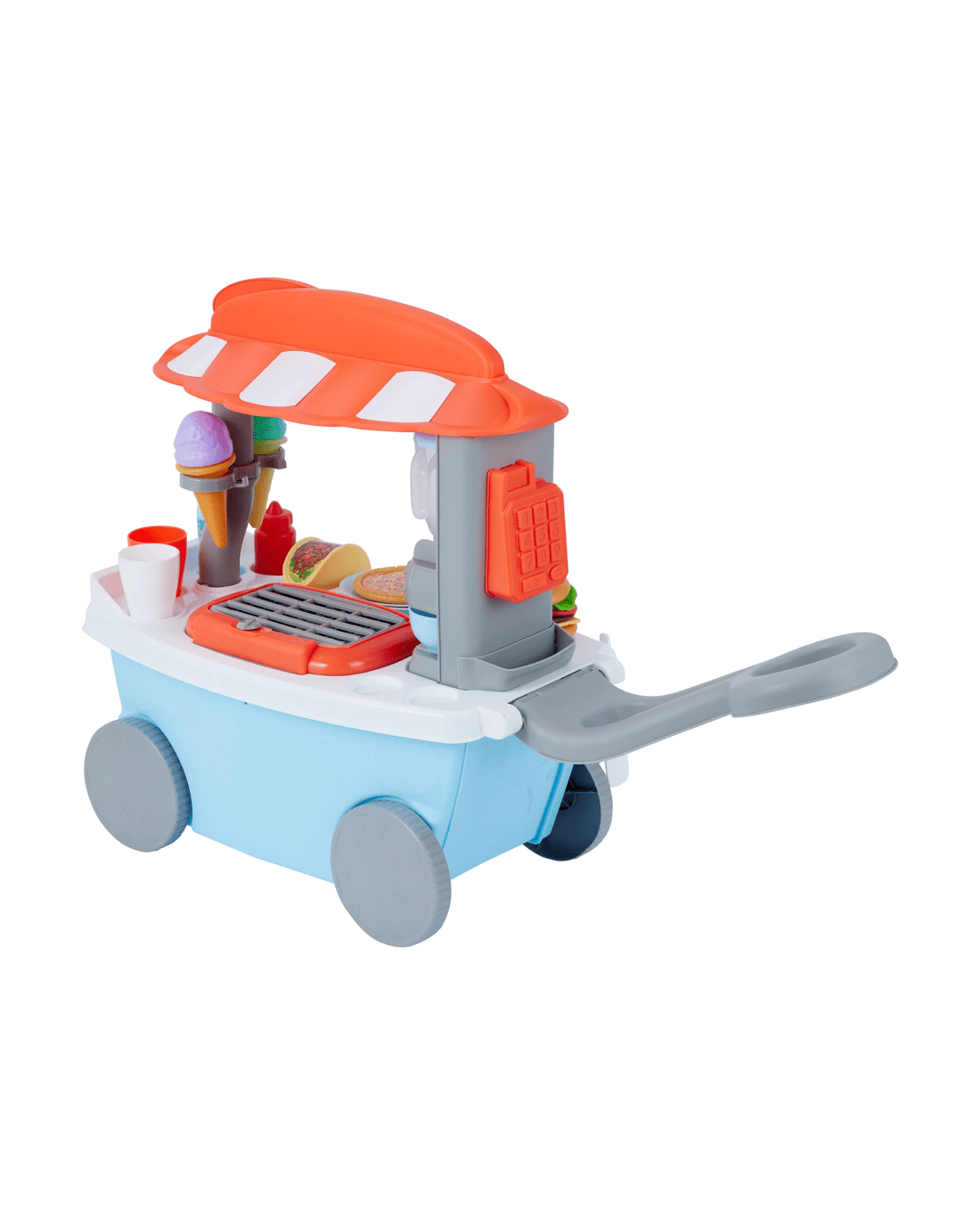 - Includes 1 x light-up sizzling grill or stove, 1 x spinning blender for smoothies, 1 x pizza grill, 1 x coffee machine, 1 x pay terminal, play food and more