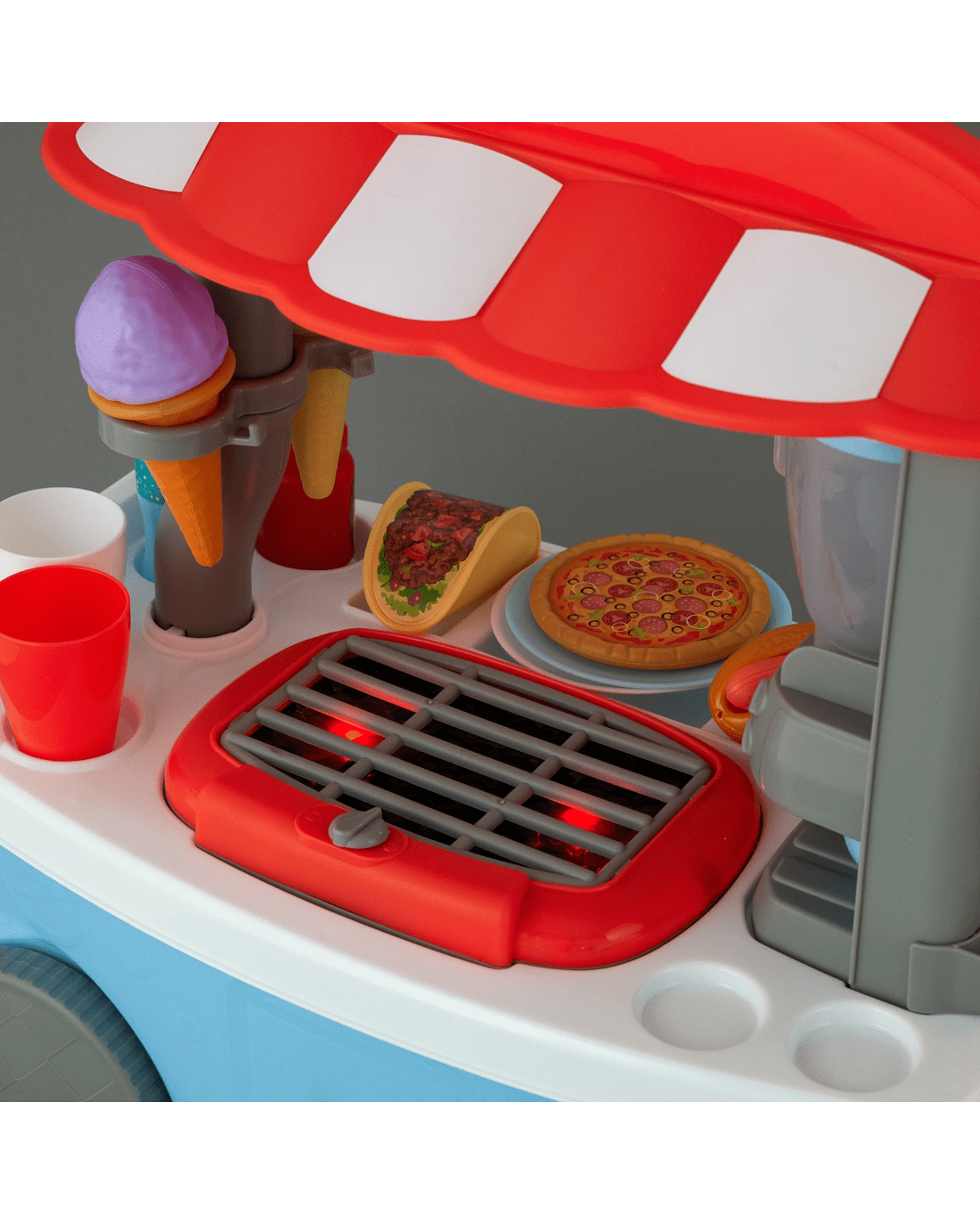 - Grill and stove light up and make realistic sounds