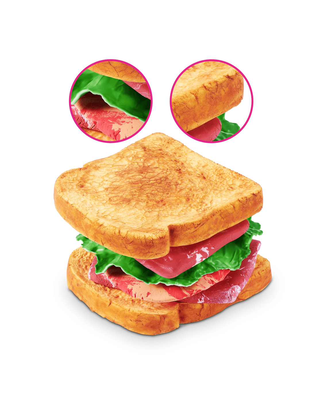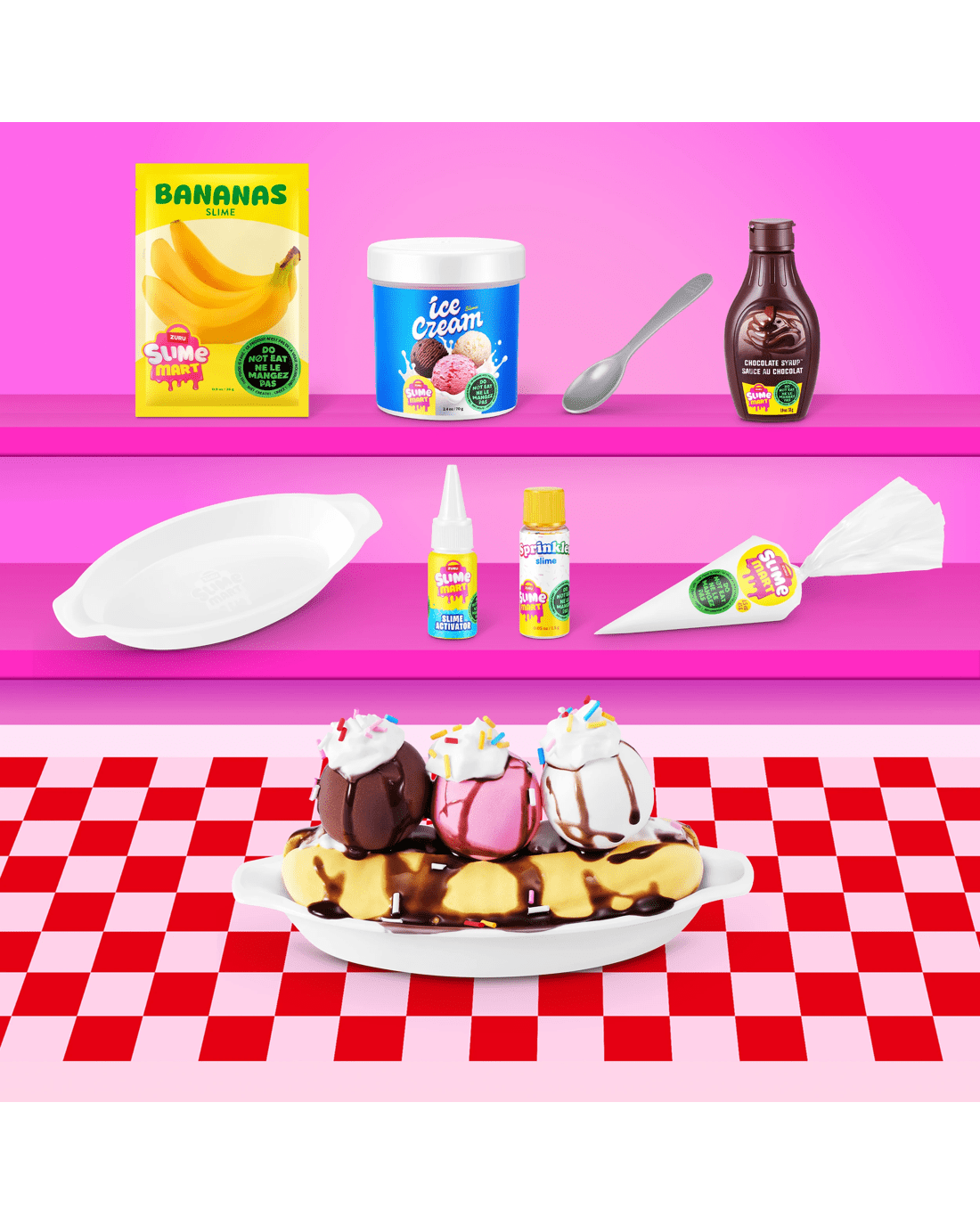 What’s cooking? That’ll be four epic slime mart recipes - BLT Sandwich, Pancakes, Chocolate Cake and Banana Split. The all-new innovative squishy slime that lets you shape your own realistic foodie creations that look too real to believe! Bring your creativity and imagination into the kitchen and share your results with friends! So, next time you go shopping, pop Slime Mart in your cart! Unleash your creativity with our DIY food-themed slime kits. Whether you’re new to slime-making or a seasoned pro, our kits provide everything you need to create your own custom slime masterpiece - from choosing your slime ingredients to mixing and squishing for the perfect texture.