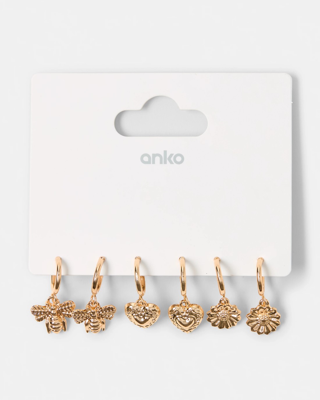 Add playful charm to your accessory collection with this 3 Pack Flower, Bee and Heart Earrings. Featuring sweet designs, these lightweight earrings are perfect for mixing, matching and everyday wear.