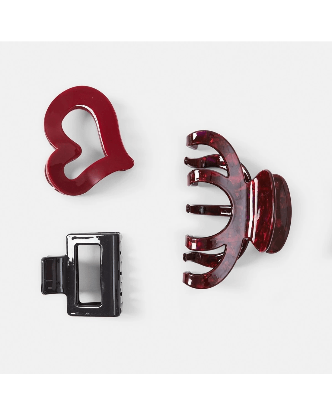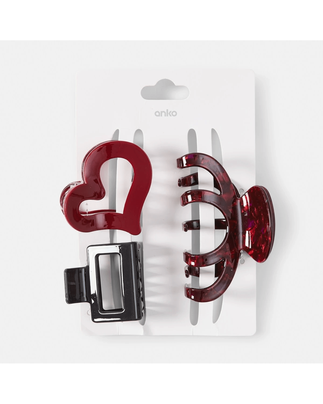 3 Pack Red and Black Mix Statement Claw Hair Clips