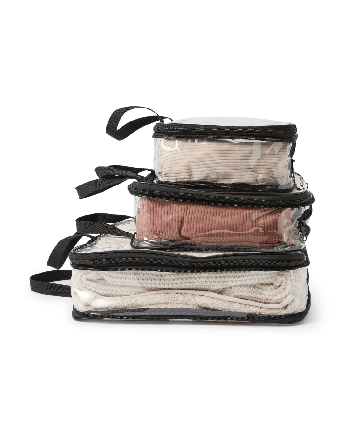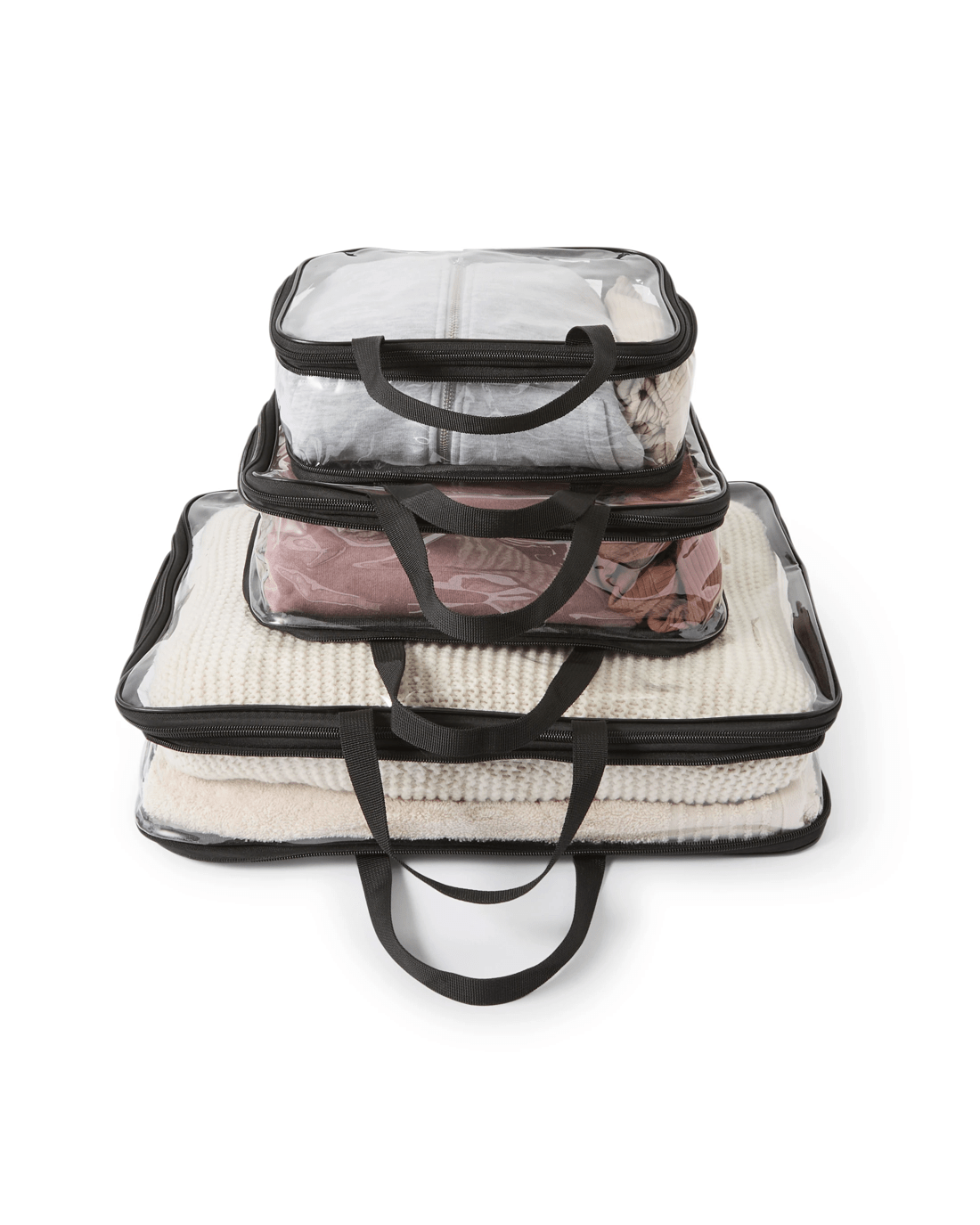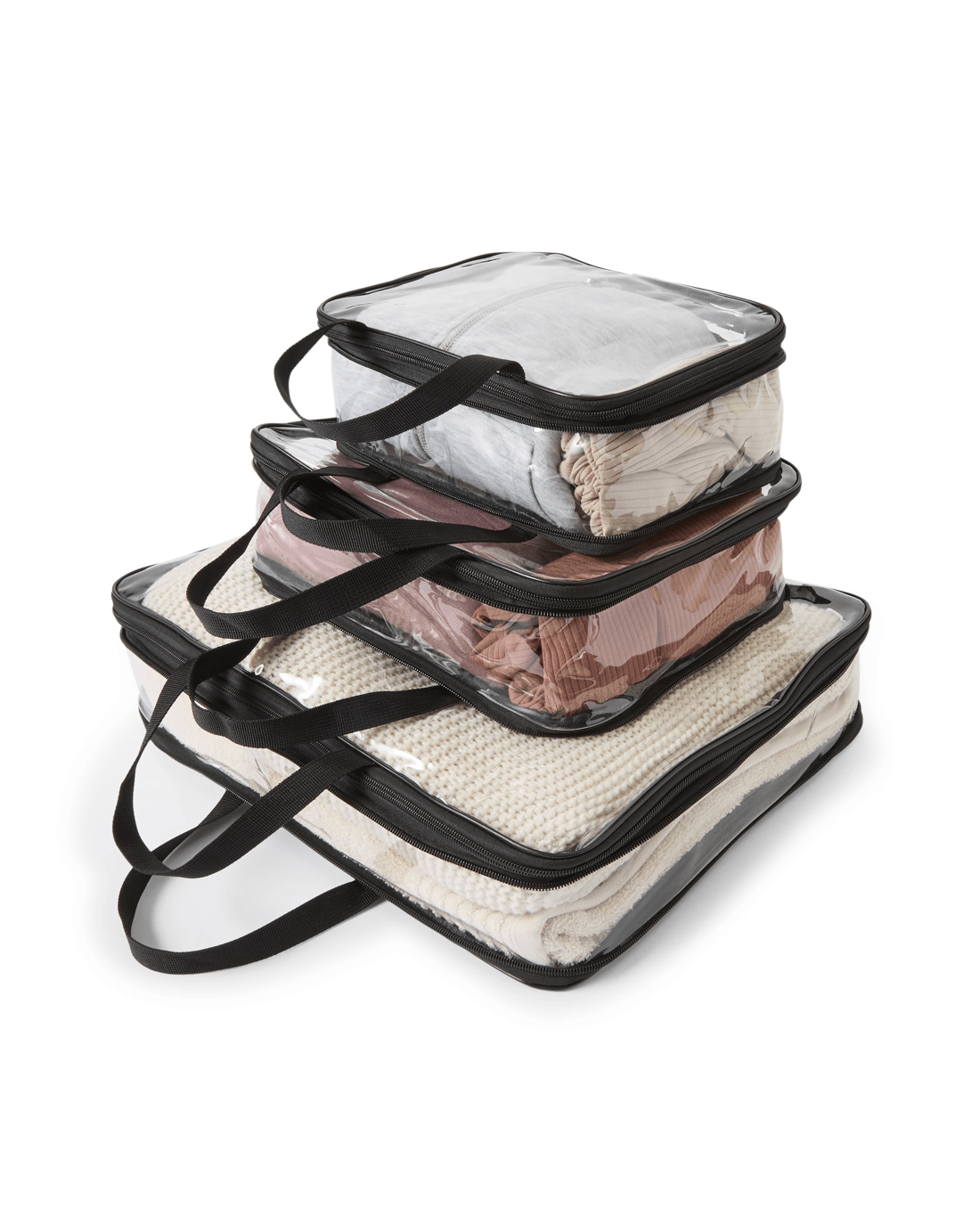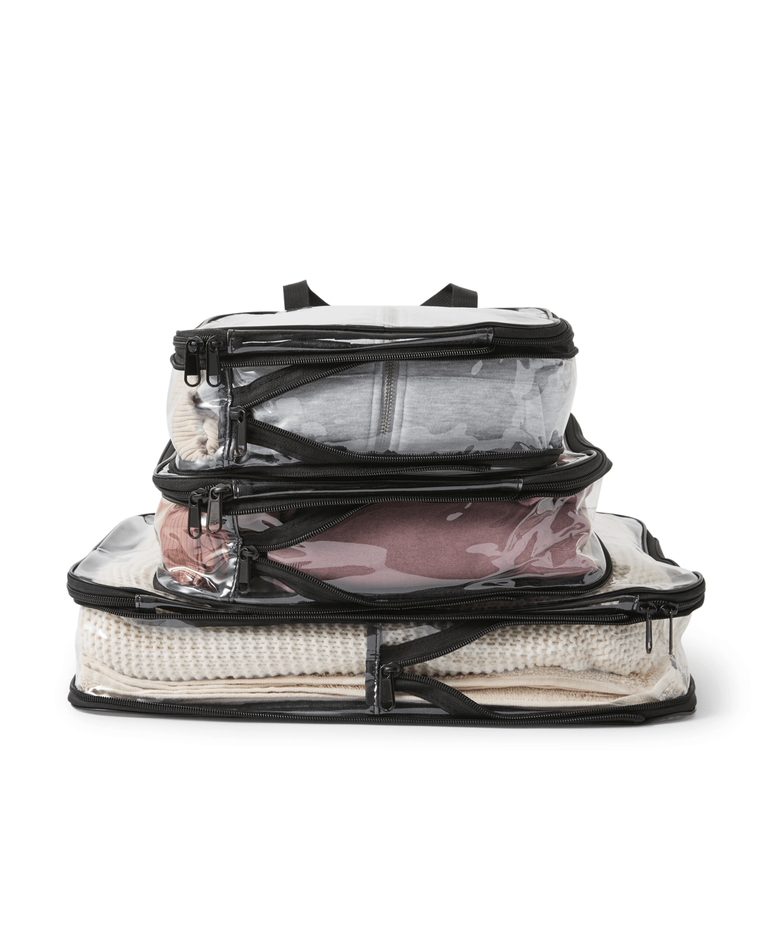 Pack with ease using this smart set of 3 Piece Clear Compression Packing Cube that keeps belongings neatly organised. The transparent design makes finding essentials simple while saving valuable suitcase space.