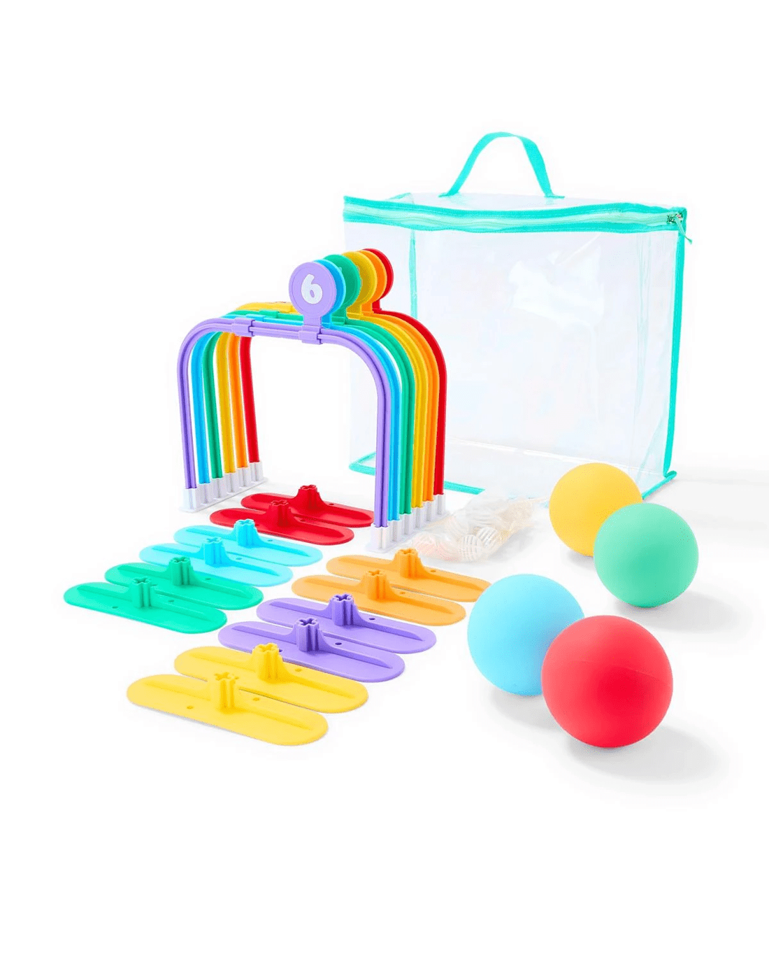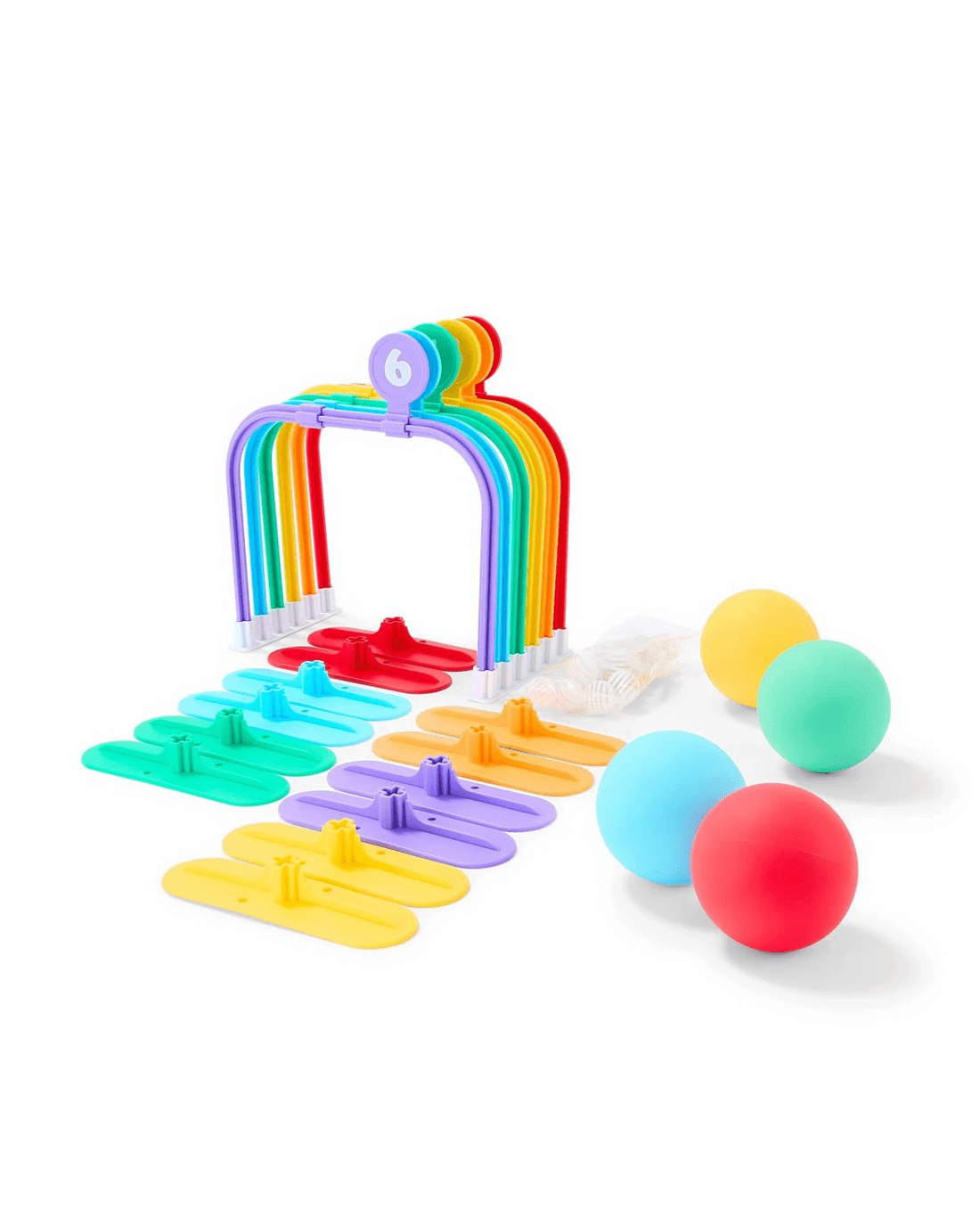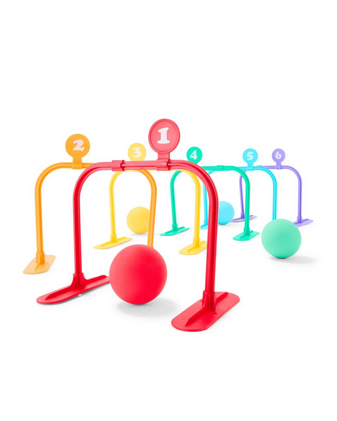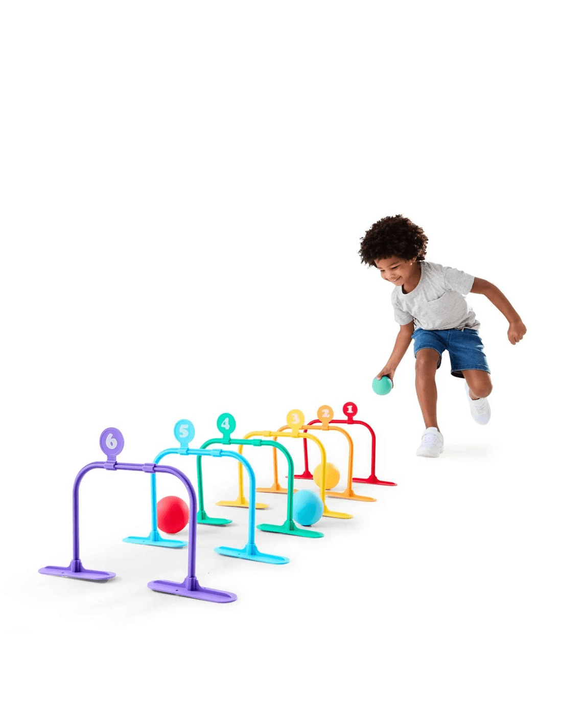 Features- Kids can kick or throw the balls through the wickets