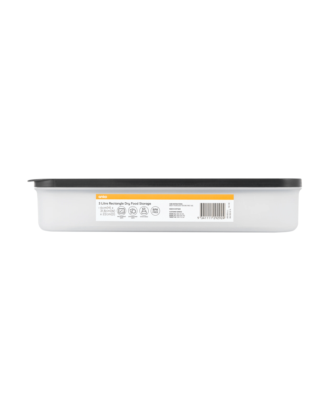 3L Rectangle Dry Food Storage Specifications