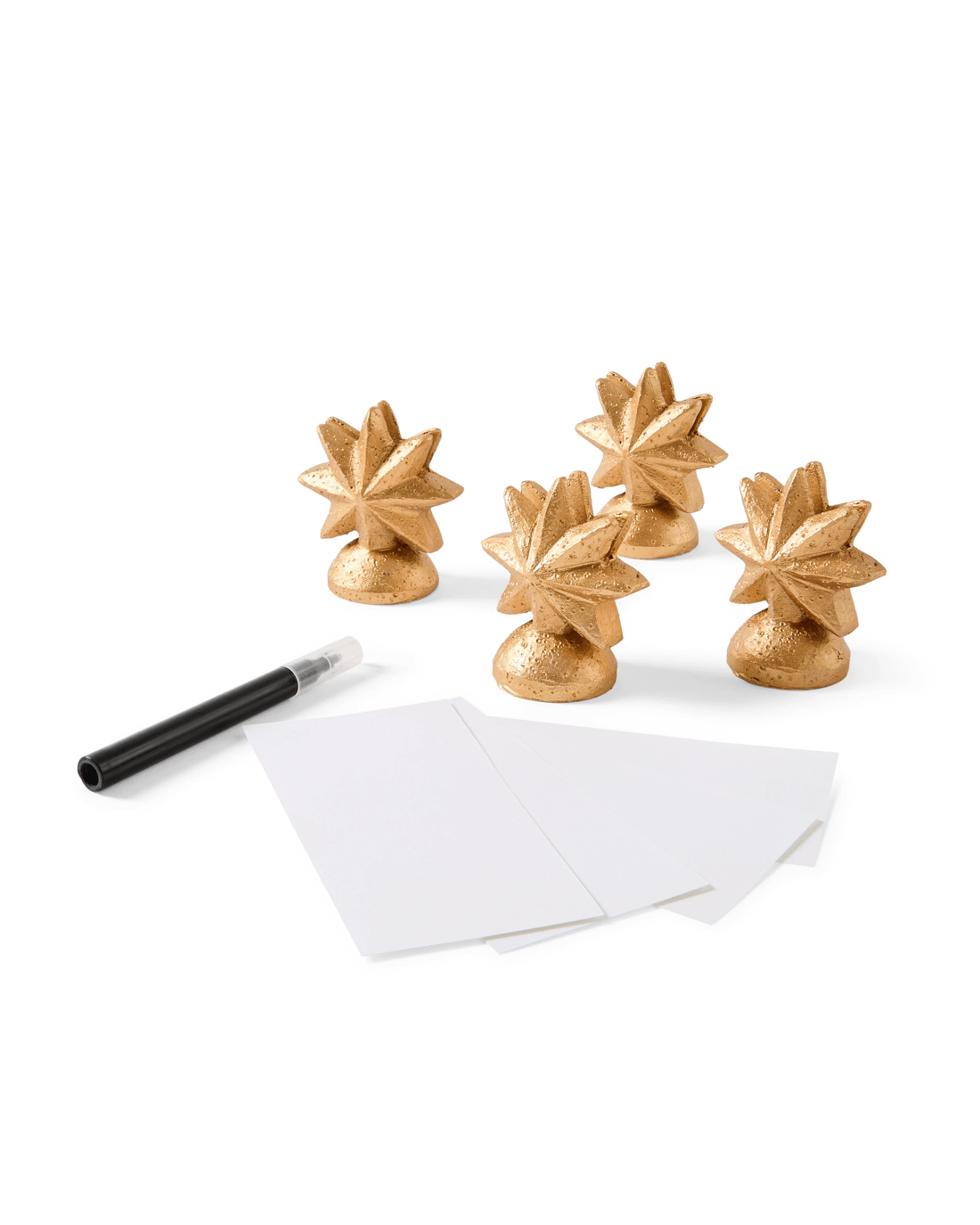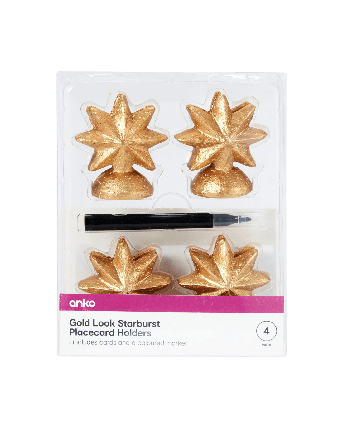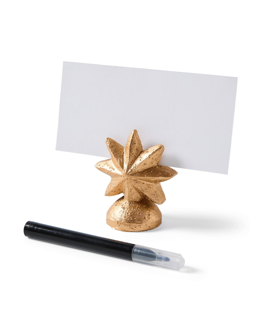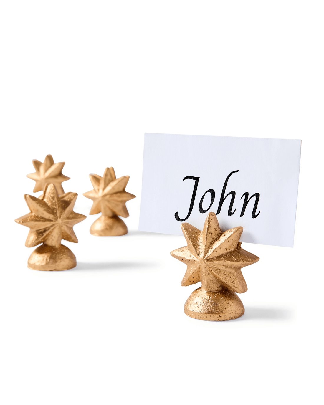 These Gold Look Starburst Placecard Holders add a touch of glamour to any tablescape. With their eye-catching design, they’re ideal for showcasing guest names in style at gatherings, elegant dinners or celebratory events.
