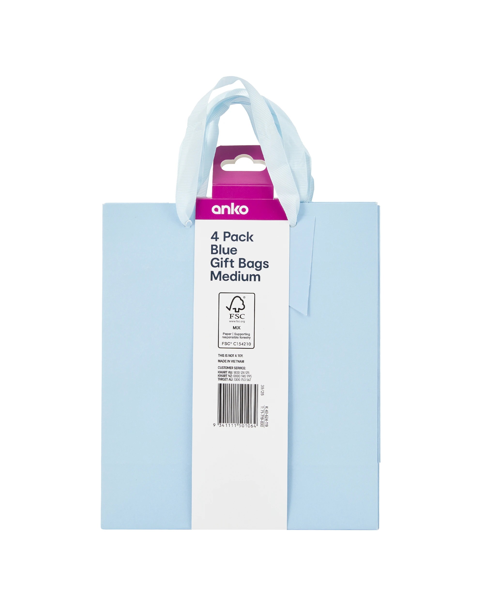 4 Pack Multi Blue Gift Bags - Medium
