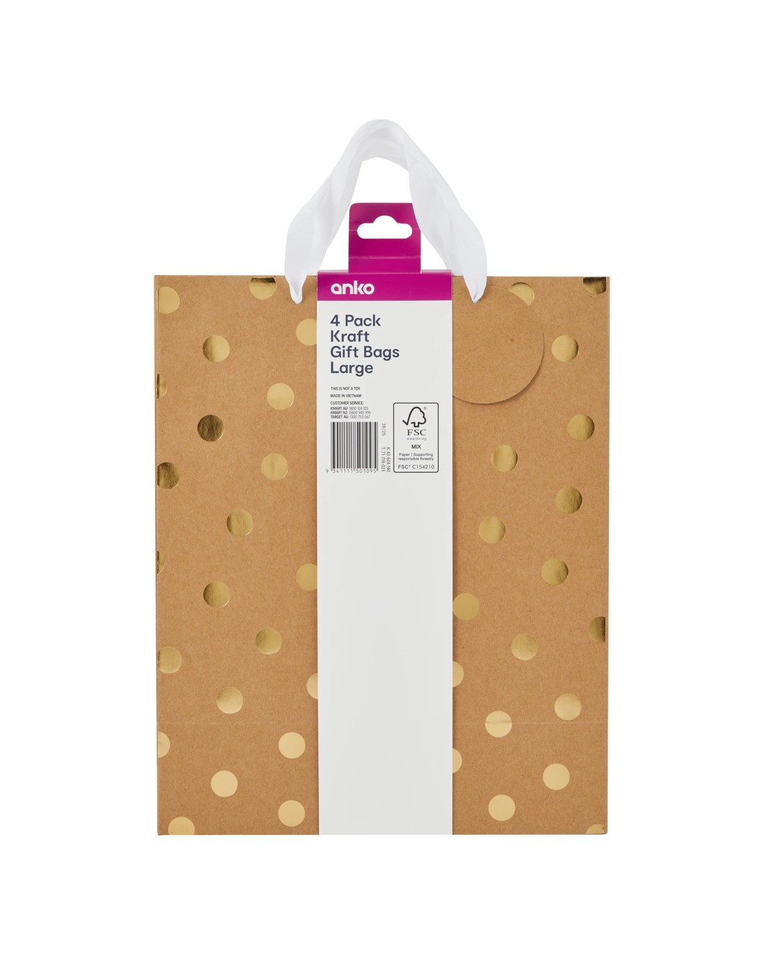 The 4 Pack Multi Kraft Foil Gift Bags adds a stylish touch to any celebration - perfect for birthdays, holidays or special occasions.