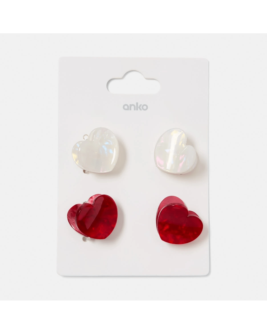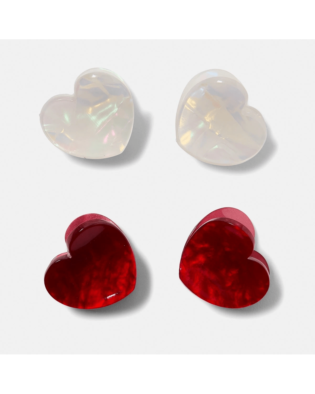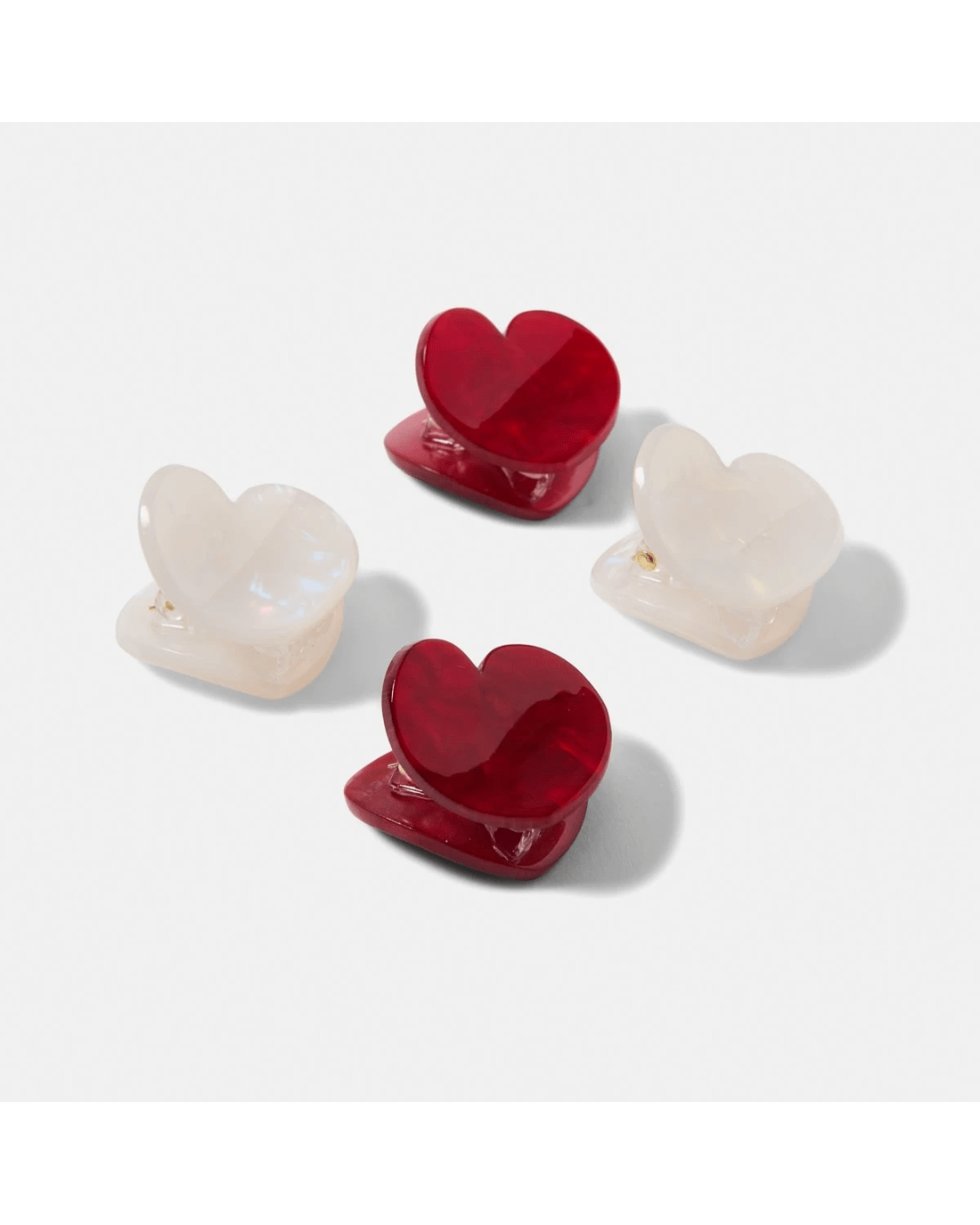 4 Pack Red and White Mini Heart Hair Claw Clips
