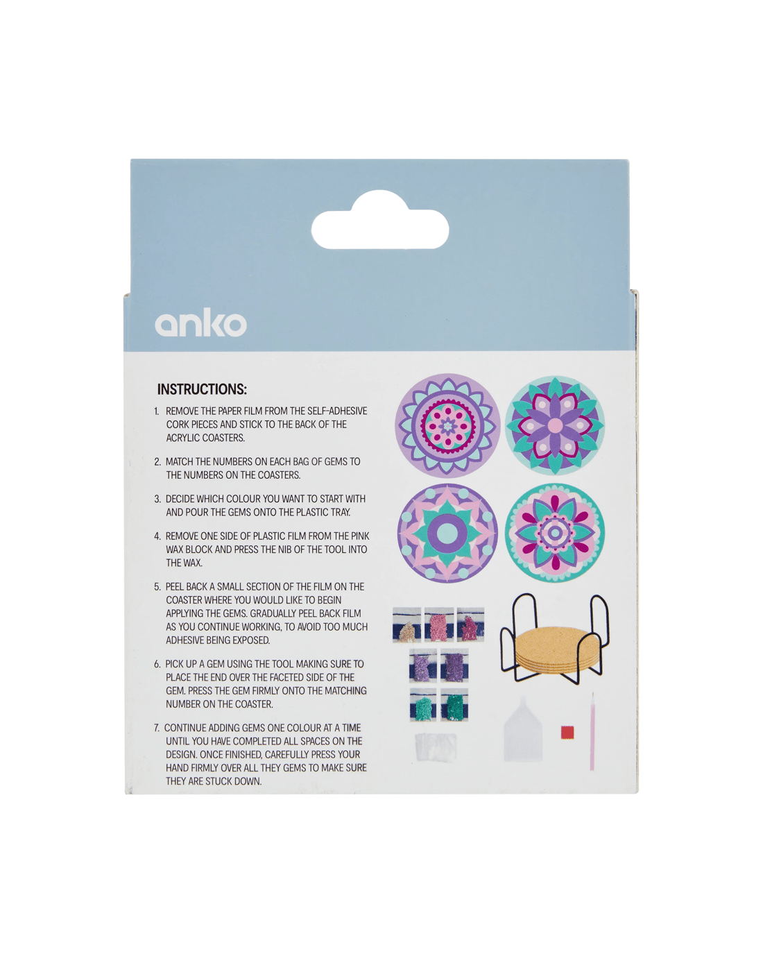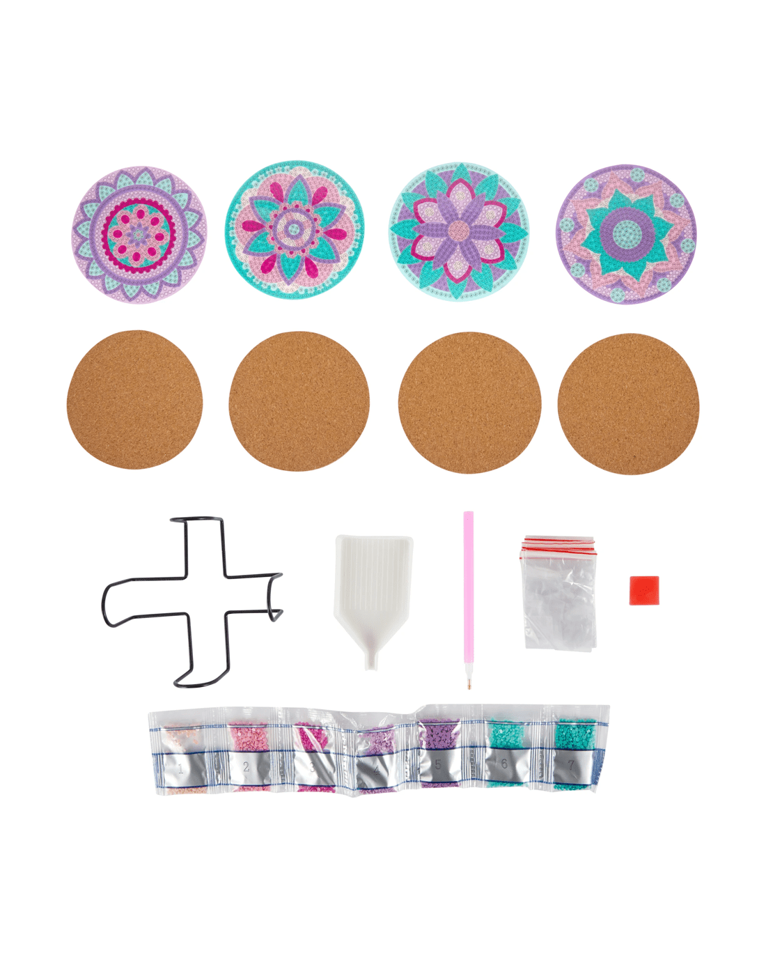 4 Pack Sparkle Gem Art Coaster Set - Mandala