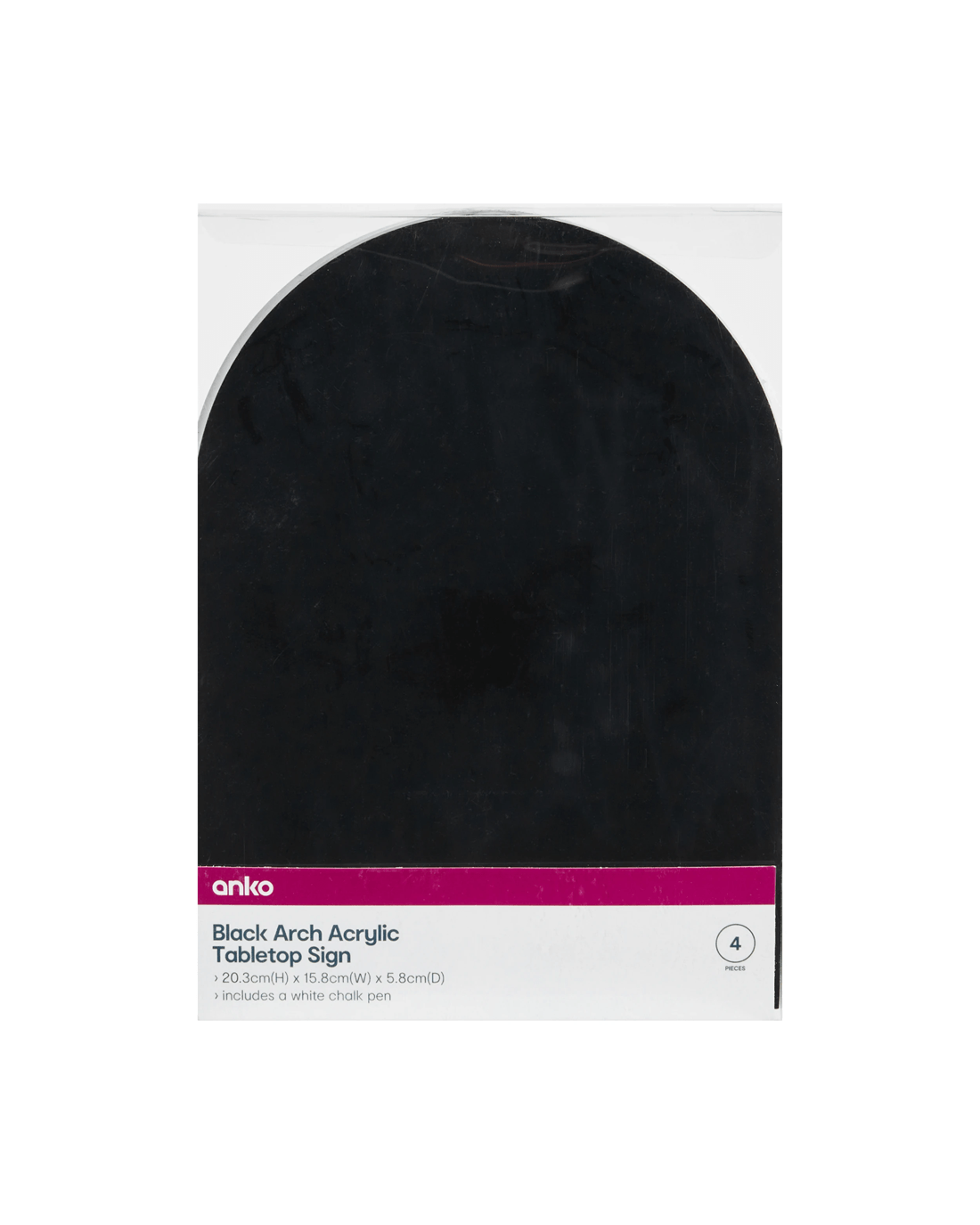 • Black Arch Acrylic Tabletop Sign: 20.3cm (H) x 15.8cm (W) x 5.8cm (D)
