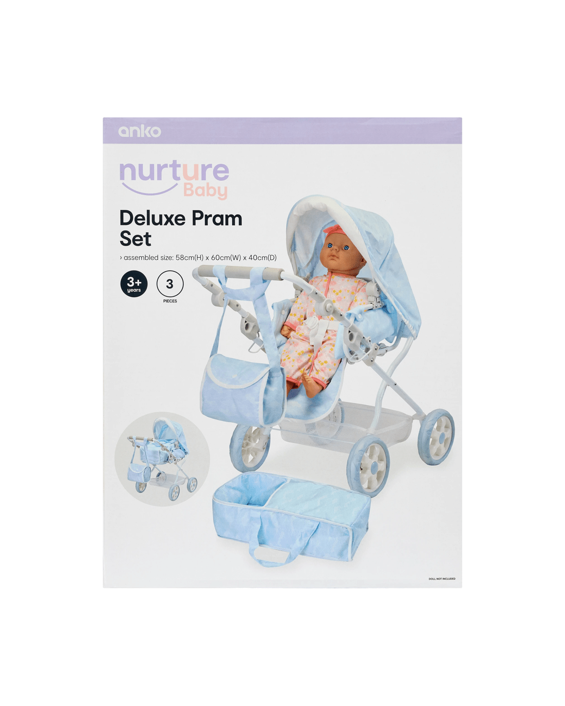 Your kids will love to take their favourite doll out for a stroll with this deluxe pram and bag set.