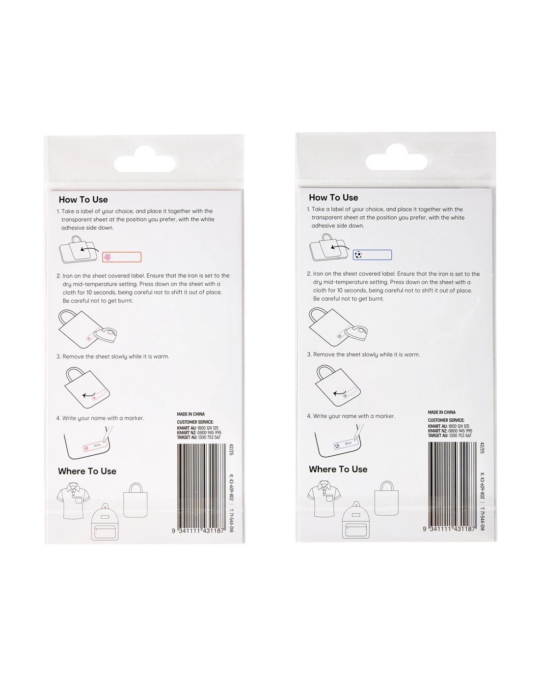 - Includes only 1 Iron-On Name Labels pack