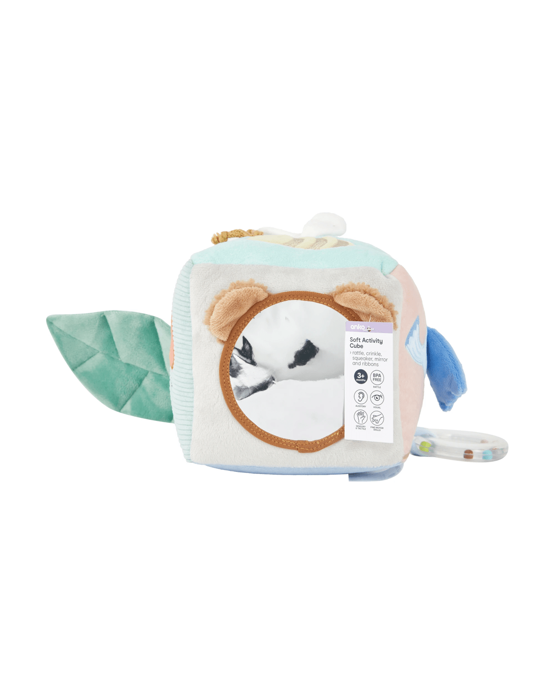 The Soft Activity Cube is perfect for curious little ones in the nursery! Designed to engage their senses, it features a variety of textures, colours and activities to explore. This delightful cube encourages early motor skills and sensory development, making it an ideal addition to your baby's playtime.