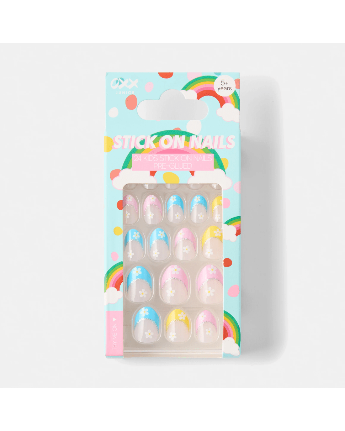 Give your kid's nails a cute makeover with this OXX Junior 24 Pack Pre-Glued Stick-On Nails.