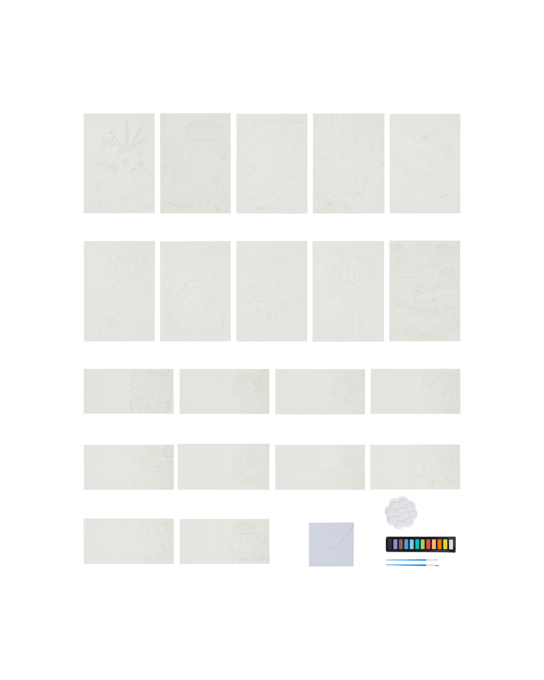 • Includes 10 x watercolour cards, 10 x envelopes, 10 x A4 prompted sheets, 12 x watercolour paints, 2 x paint brushes, 1 x paint palette and 1 x instruction sheet