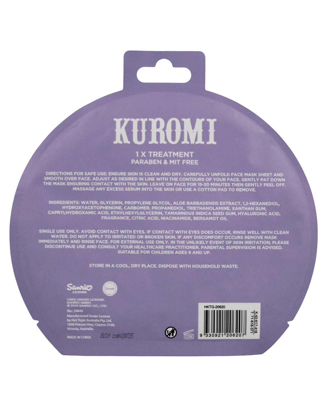 Pamper your skin (and your dark side) with the Kuromi Hydrating Sheet Mask. This calming lavender-scented mask soothes and hydrates while you kick back and relax. Made with a skin-loving formula that’s free from parabens and MIT.