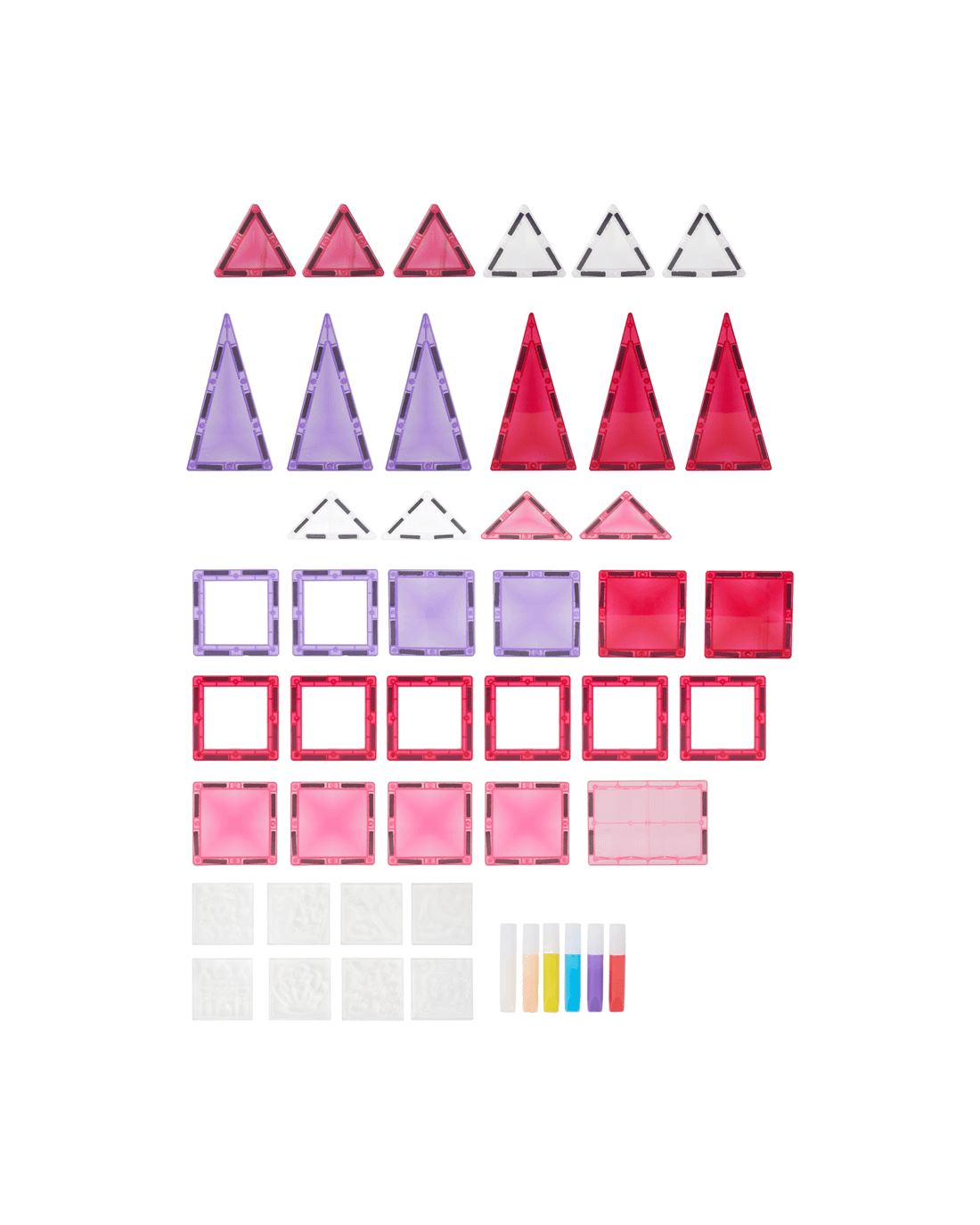 - Includes square, triangle, geometric magnetic tiles and paint pens